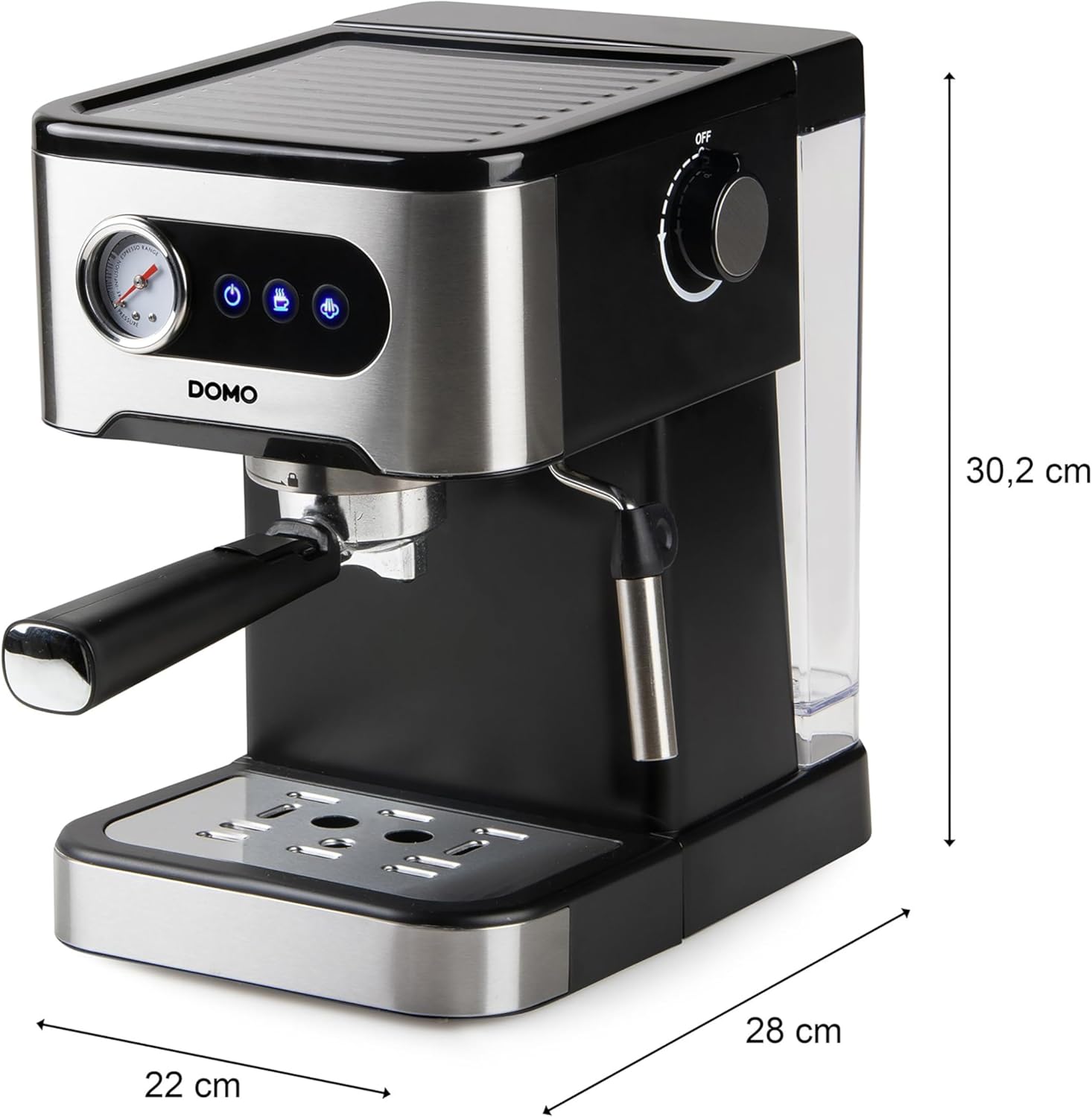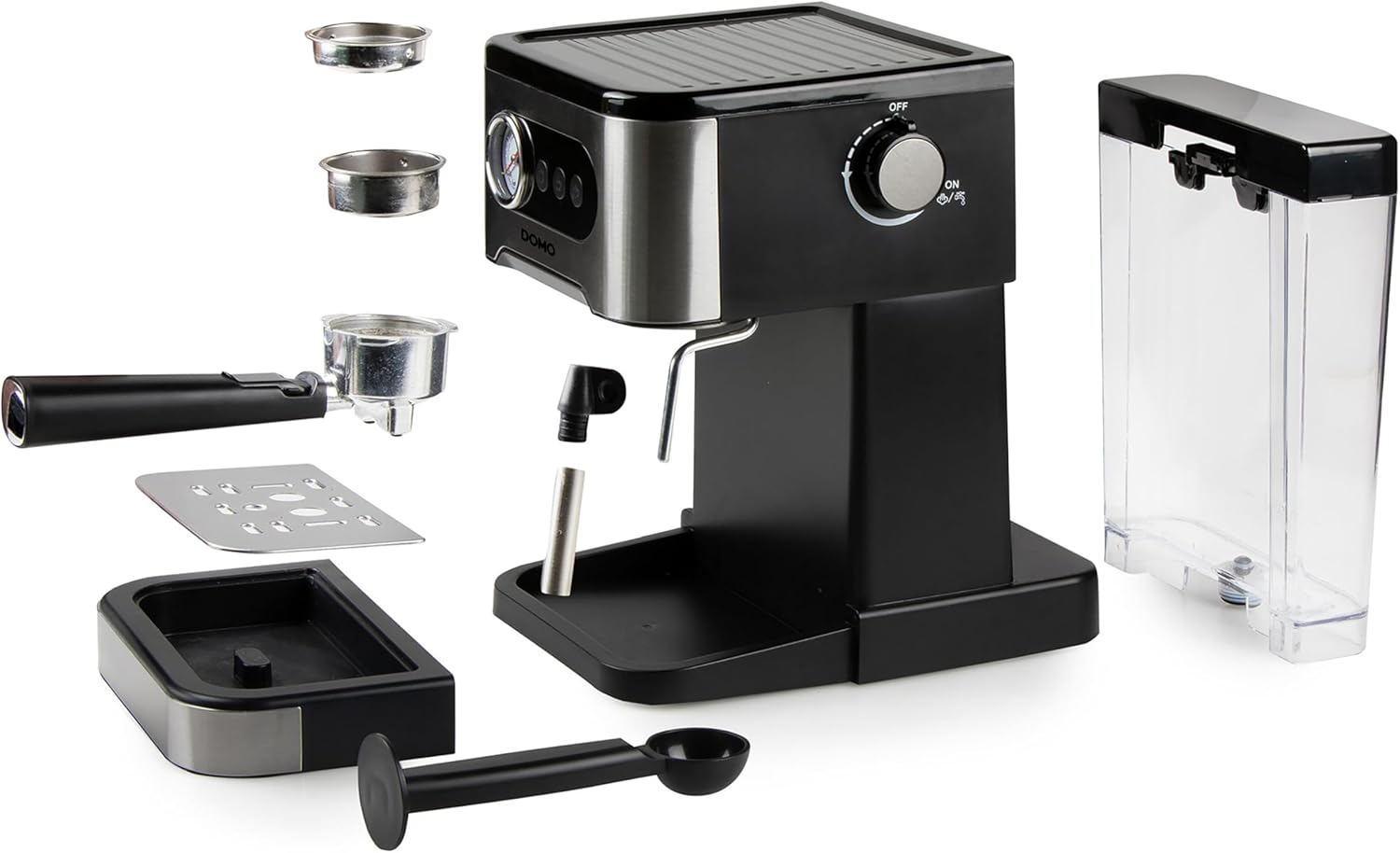 Domo DO1138K Espressomaschine mit Manometer - 20 Bar - Mit integrierte Dampfdüse - Edelstahl/schwarz | قیمت یورویی 106.65€