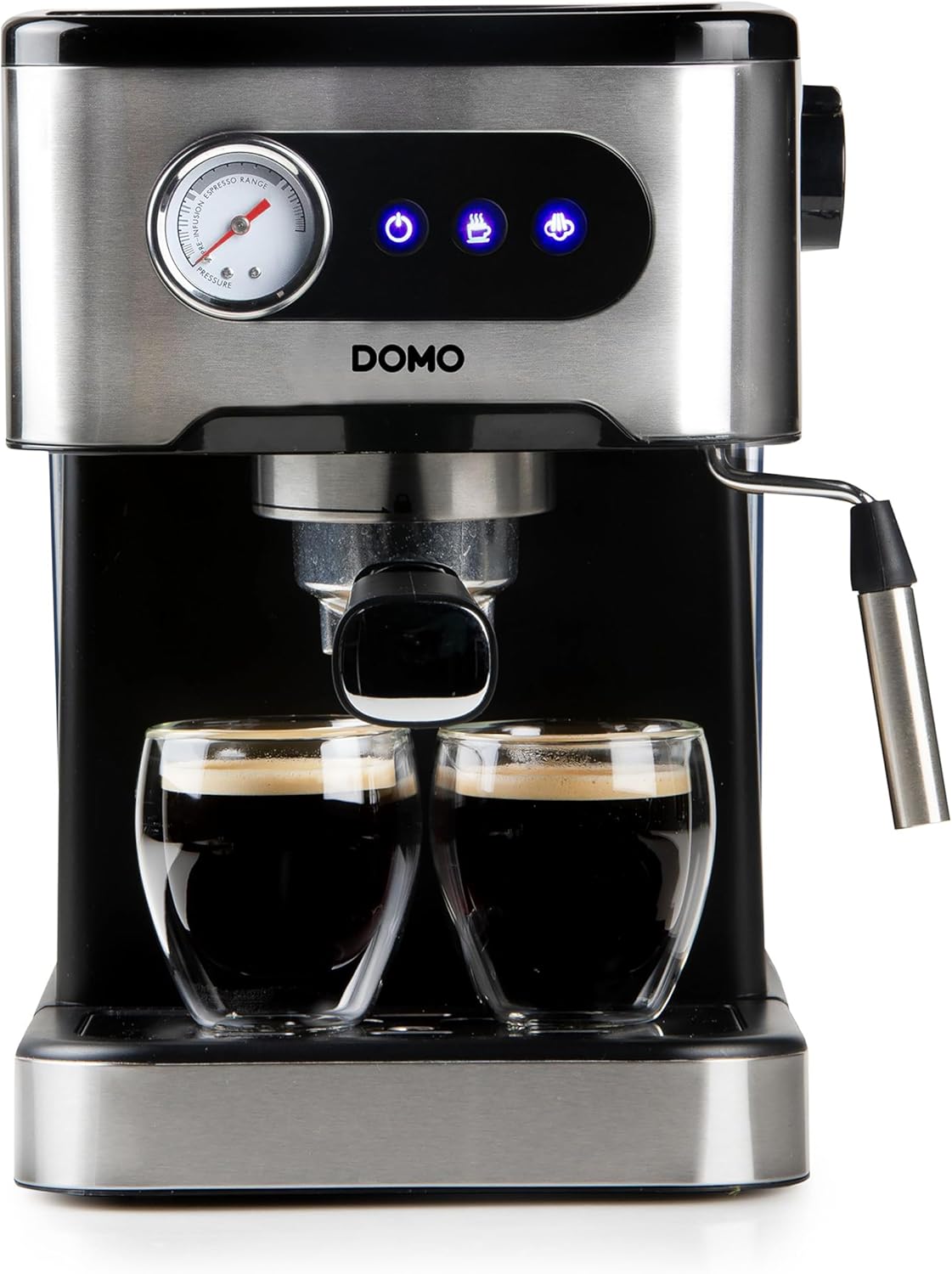 دستگاه اسپرسوساز دومو مدل DO1138K با فشارسنج - 20 بار - با نازل بخار یکپارچه - استیل ضد زنگ/مشکی