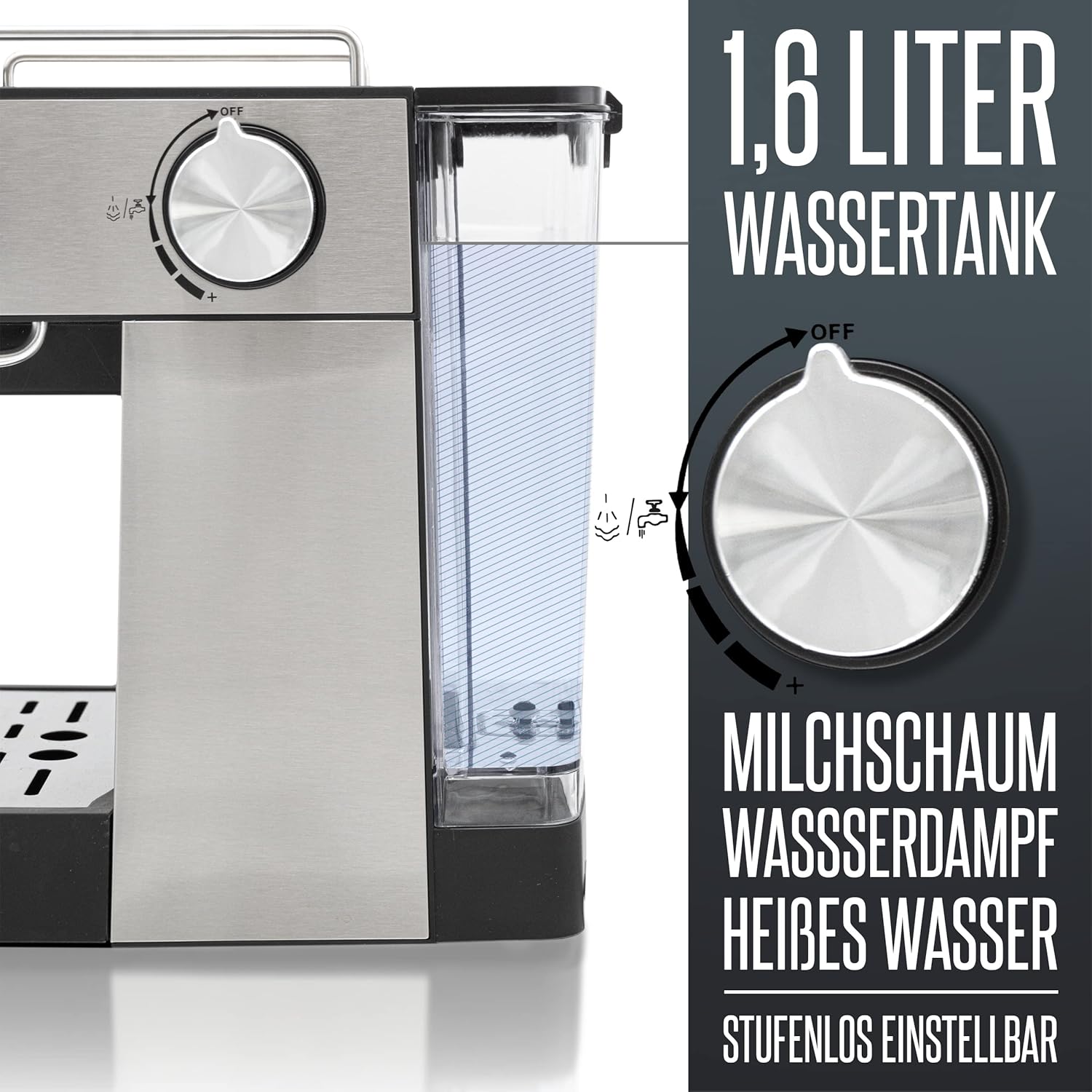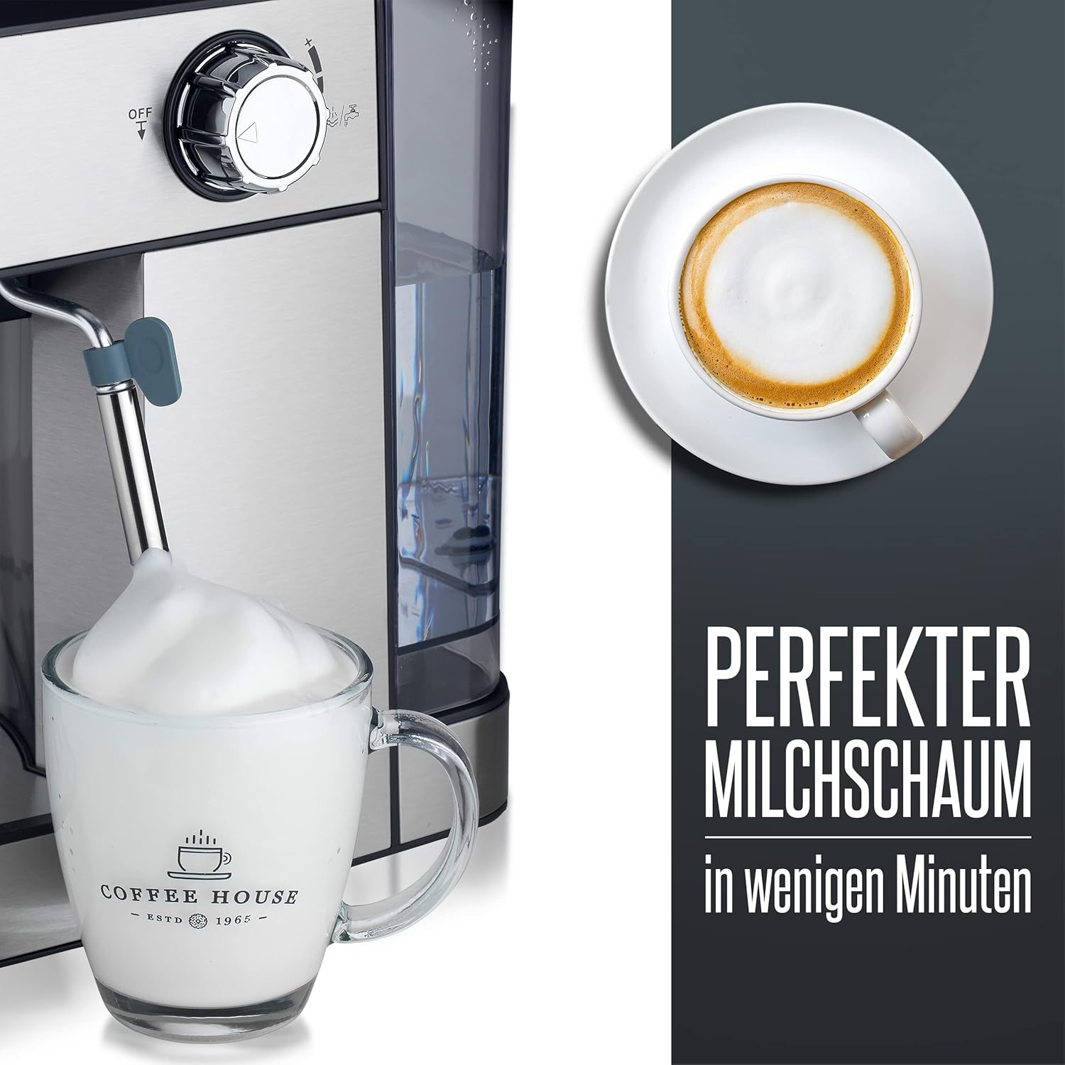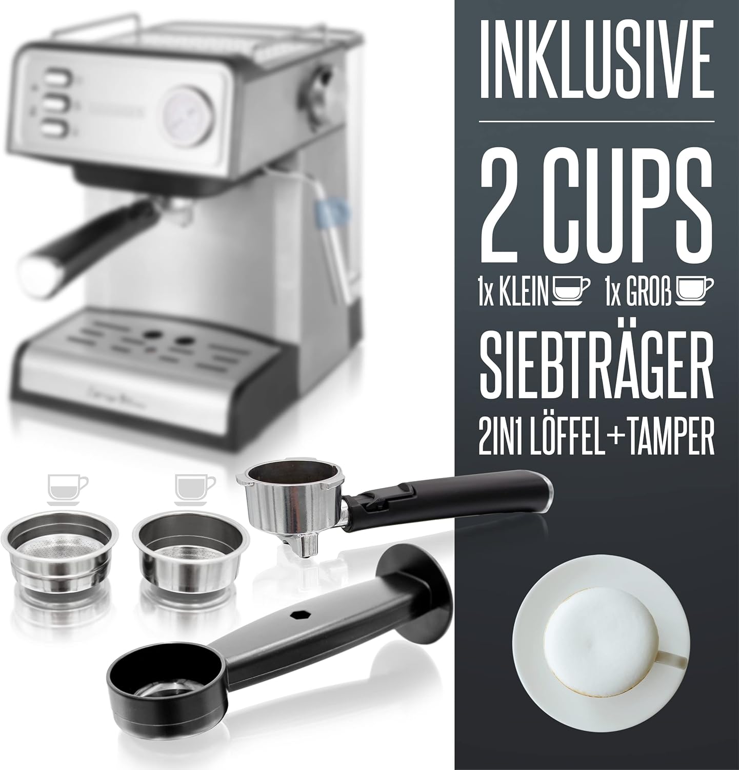 ☕ KAFFEE wie vom PROFI: Die Heinrichs Espressomaschine hat die 20 Bar Italia Ulka Pump integriert. Somit genießen Sie Ihren Kaffee wie beim Italiener. In Italien wird der Espresso mit bis zu 20 Bar Druck erzeugt. Beiliegendes Zubehörset bestehend aus Tamper/Messlöffel+Siebträger+2 verschiedenen Siebträger-Einsätzen lässt Ihnen keinen Wunsch mehr offen. 💪 Die Kaffeemaschine schießt mit 850 W Leistung und 20 Bar Druck heißes Wasser durch die gemahlene Kaffeebohne und maximiert somit den vollen Aromagenuss. Auf Wunsch können sie mit der angebrachten professionellen Milchaufschaumdrüse zu einem leckeren Milchkaffee, Cappuccino oder Latte Macchiato variieren. ☝️ Button: Dank der hochwertigen Bedienelemente ist die Bedienung der Siebträgermaschine kinderleicht: Sie haben die Auswahl zwischen Espresso, Kaffee oder der Aufschaumfunktion für Milch. ✅ Die Maschine ist mit einem 1.6 Liter Wassertank ausgestattet, welcher leicht und kompakt auffüllbar ist. Außerdem befindet sich im oberen Bereich der Maschine eine Tassenablage, welche bei Betrieb der Maschine Wärme an die Tassen weiterleitet, um anschließend eine vorgewärmte Tasse zu erlangen. Dieser Prozess führt zu einem langen warmen Kaffeegenuss. Auch beinhaltet die Espressomaschine ein abnehmbares Tropfgitter aus Edelstahl, um Ihnen die Reinigung zu erleichtern. 🎁Freude beim Verschenken: Überraschen Sie Ihre Liebsten mit unseren Produkten. Wir stehen Ihnen auch dort mit Rat und Tat zur Seite. | قیمت یورویی : 89.99€