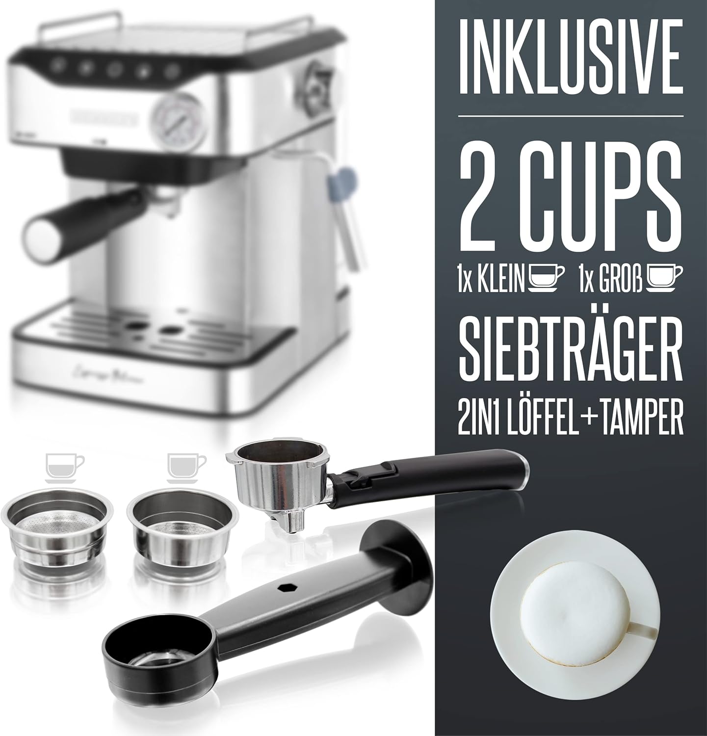 ☕ KAFFEE wie vom PROFI: Die Heinrichs Espressomaschine hat die 20 Bar Italia Ulka Pump integriert. Somit genießen Sie Ihren Kaffee wie beim Italiener. In Italien wird der Espresso mit bis zu 20 Bar Druck erzeugt. Beiliegendes Zubehörset bestehend aus Tamper/Messlöffel+Siebträger+2 verschiedenen Siebträger-Einsätzen lässt Ihnen keinen Wunsch mehr offen. 💪 Die Kaffeemaschine schießt mit 850 W Leistung und 20 Bar Druck heißes Wasser durch die gemahlene Kaffeebohne und maximiert somit den vollen Aromagenuss. Auf Wunsch können sie mit der angebrachten professionellen Milchaufschaumdrüse zu einem leckeren Milchkaffee, Cappuccino oder Latte Macchiato variieren. ☝️ LED-TOUCH-DISPLAY: Dank des LED-Touch-Displays ist die Bedienung der Siebträgermaschine kinderleicht: Sie haben die Auswahl zwischen Espresso, Kaffee, manueller Füllmenge oder der Aufschaumfunktion für Milch. ✅ Die Maschine ist mit einem 1.6 Liter Wassertank ausgestattet, welcher leicht und kompakt auffüllbar ist. Außerdem befindet sich im oberen Bereich der Maschine eine Tassenablage, welche bei Betrieb der Maschine Wärme an die Tassen weiterleitet, um anschließend eine vorgewärmte Tasse zu erlangen. Dieser Prozess führt zu einem langen warmen Kaffeegenuss. Auch beinhaltet die Espressomaschine ein abnehmbares Tropfgitter aus Edelstahl, um Ihnen die Reinigung zu erleichtern. 🎁Freude beim Verschenken: Überraschen Sie Ihre Liebsten mit unseren Produkten. Wir stehen Ihnen auch dort mit Rat und Tat zur Seite. | قیمت یورویی : 89.99€