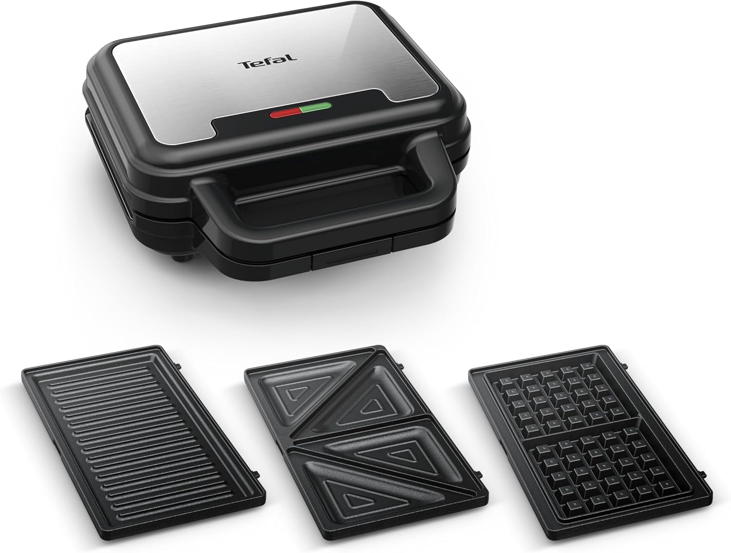 Tefal Ultracompact 3-in-1 Sandwich-Waffel-Panini Kombigerät, Antihaftbeschichtung, wärmeisolierter Griff, Edelstahl/Schwarz, SW383D10 | قیمت یورویی 69.88€