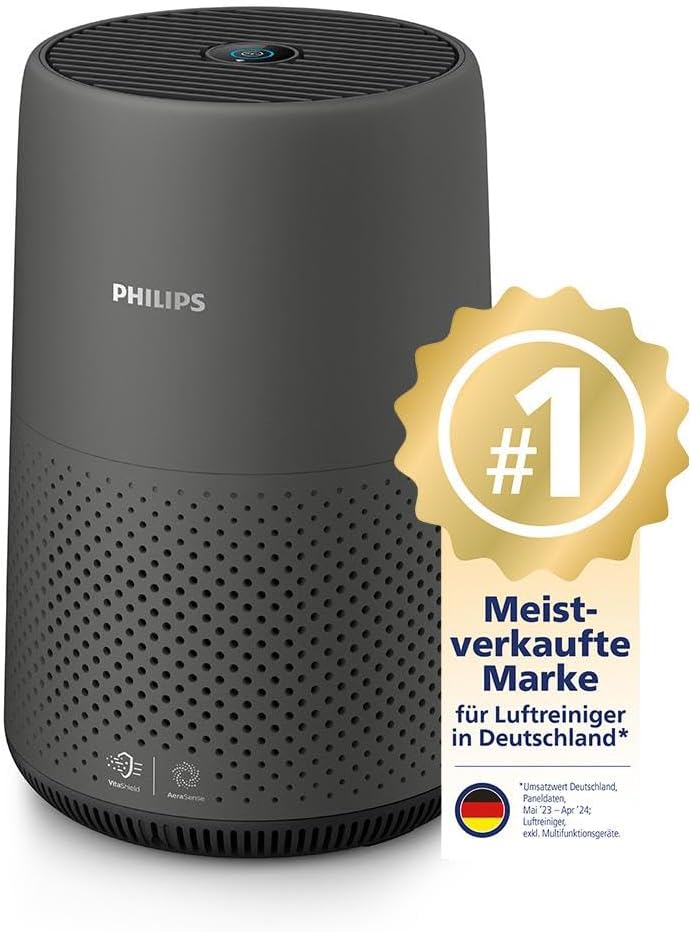 Philips Haushaltsgeräte 800i-Serie Kompakt-Luftreiniger, 49m2, HEPA- & Aktivkohlefilter, Entfernt Bis Zu 99,5% Der Viren & Aerosole Aus Der Luft (1), Schwarz (AC0850/11) | قیمت یورویی 109.99€