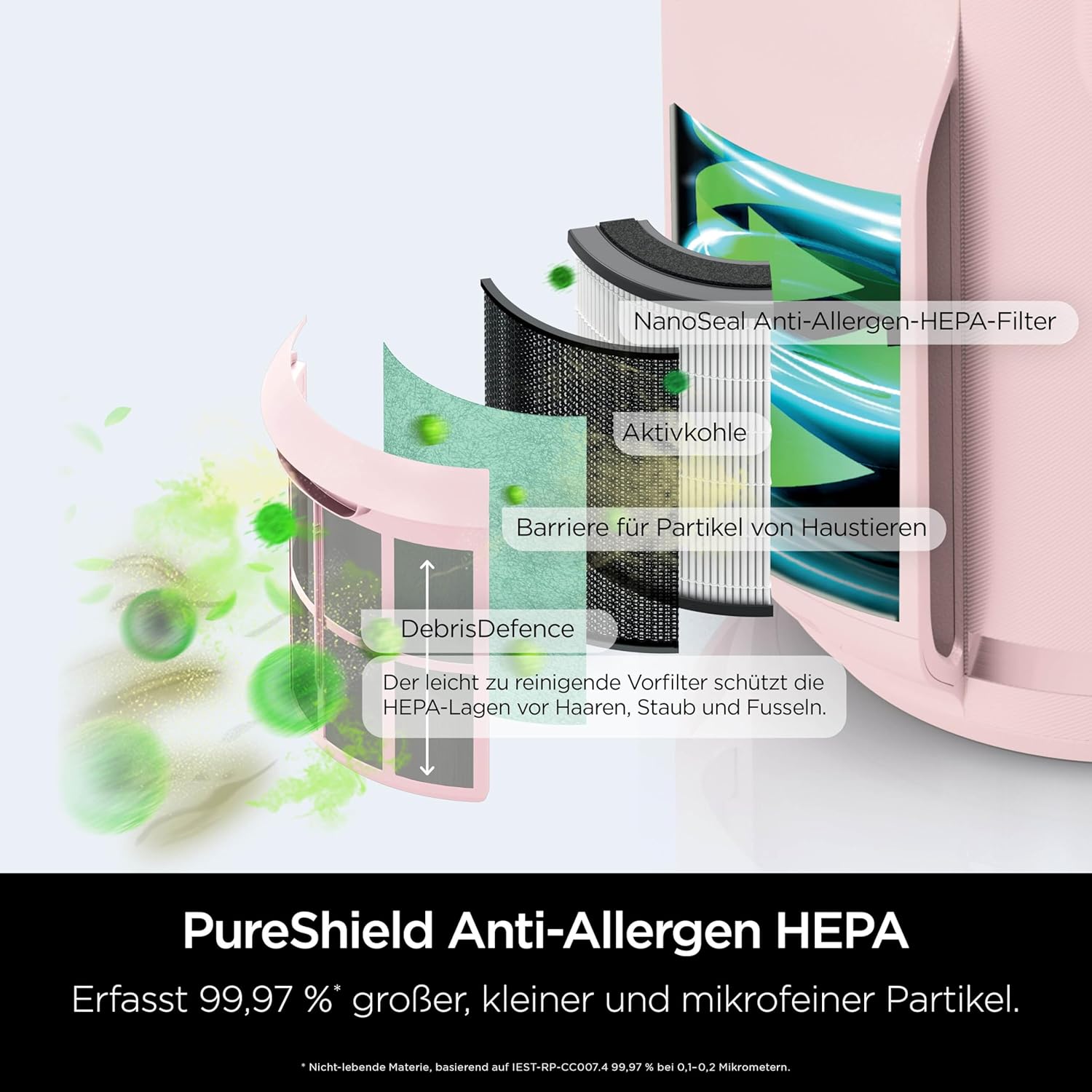 Shark NeverChange Luftreiniger für bis zu 5 Jahre, für Zuhause, Raumabdeckung 23 m2, kompakter Luftreiniger, HEPA-Filter, fängt 99,97% der Allergene, leise, LED-Display, Quartz HP072EUPK für 23sqm Raumgröße Quartz