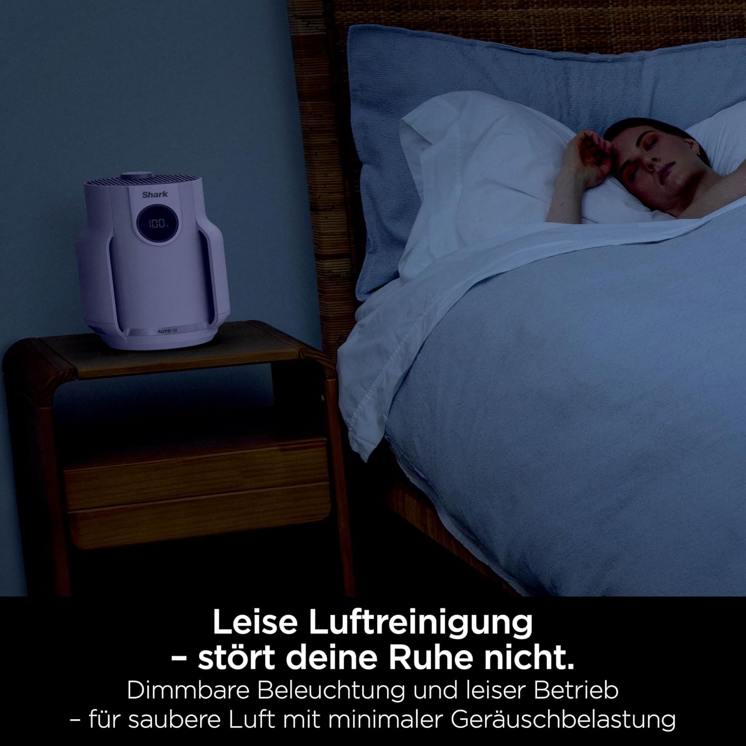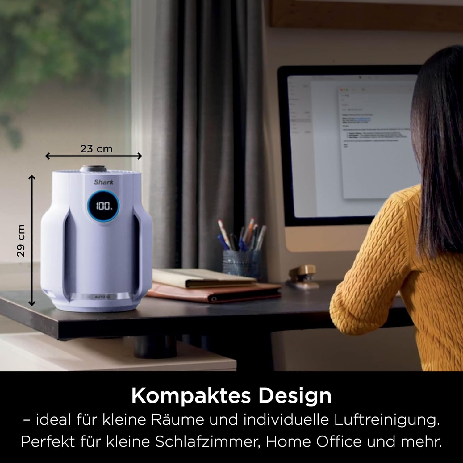 Shark NeverChange Luftreiniger für bis zu 5 Jahre, für Zuhause, Raumabdeckung 23 m2, kompakter Luftreiniger, HEPA-Filter, fängt 99,97% der Allergene, leise, LED-Display, Lila HP072EUPL für 23sqm Raumgröße Lila