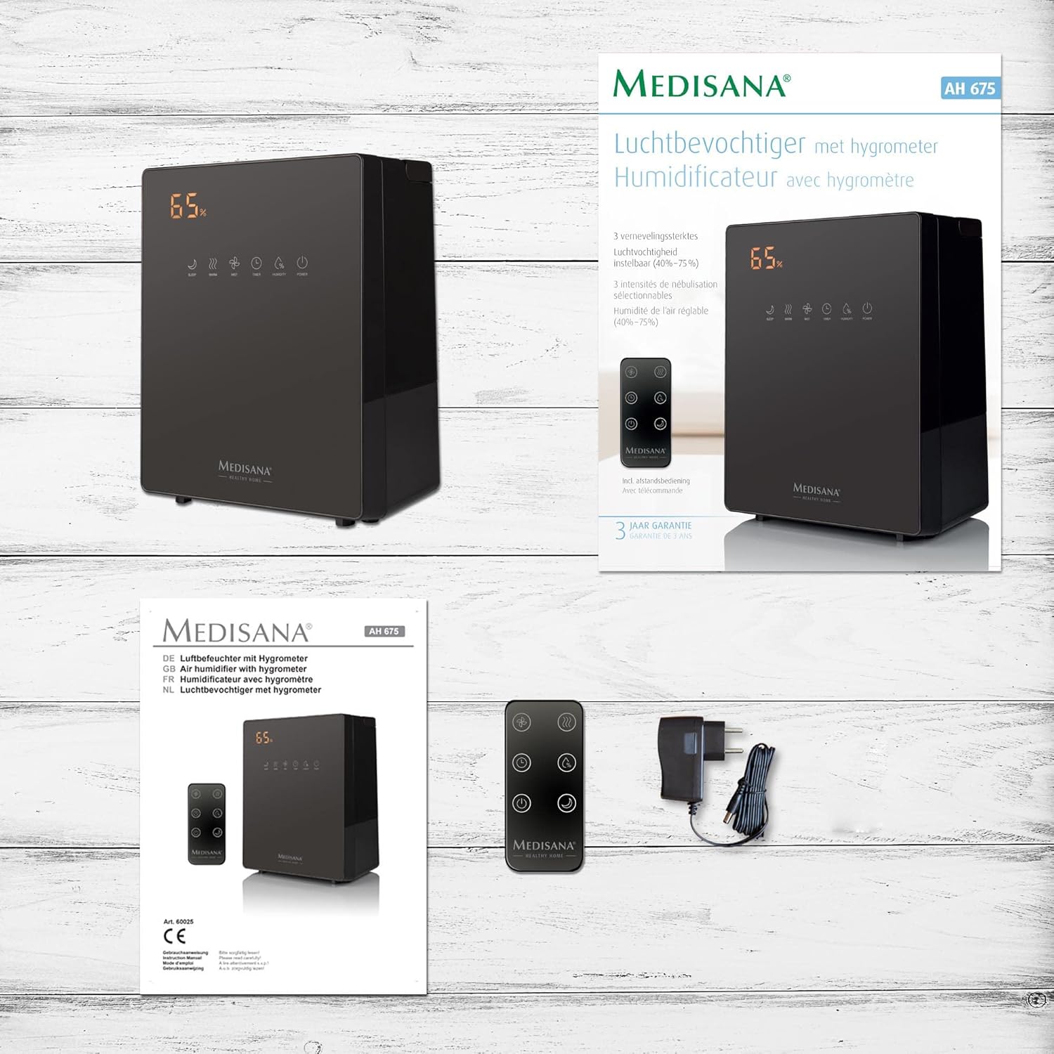 هوای سالم در محیط داخلی: دستگاه مرطوب کننده AH 675 ما به شما کمک می‌کند تا آب و هوای سالمی در محیط داخلی خانه ایجاد کنید و از خشکی هوا جلوگیری کنید. عملکرد: این دستگاه رطوبت‌ساز دارای عملکرد پیش‌گرمایش برای از بین بردن میکروب‌ها و باکتری‌ها است. رطوبت به طور خودکار قابل تنظیم است (۴۵٪-۷۵٪). مخزن آب ۵.۲ لیتر گنجایش دارد. کارکرد آسان: می‌توانید با استفاده از دکمه‌های لمسی حسگر یا کنترل از راه دور، رطوبت‌ساز را راه‌اندازی کنید. صفحه نمایش بزرگ LED امکان خواندن آسان داده‌ها را فراهم می‌کند. کارآمد: این مرطوب‌کننده به سه شدت اتمیزه کردن مجهز است. حداکثر زمان کارکرد، بسته به شدت، ۹ تا ۲۳ ساعت است. اتمیزه کردن بسیار ریز: به لطف فناوری اولتراسونیک، این مرطوب‌کننده به طور قابل توجهی کیفیت هوایی را که تنفس می‌کنیم بهبود می‌بخشد. این دستگاه از طریق اتمیزه کردن بسیار ریز به بالاترین اثربخشی خود دست می‌یابد.