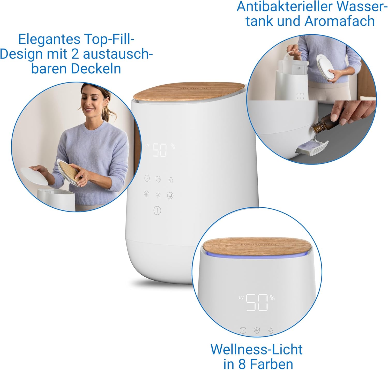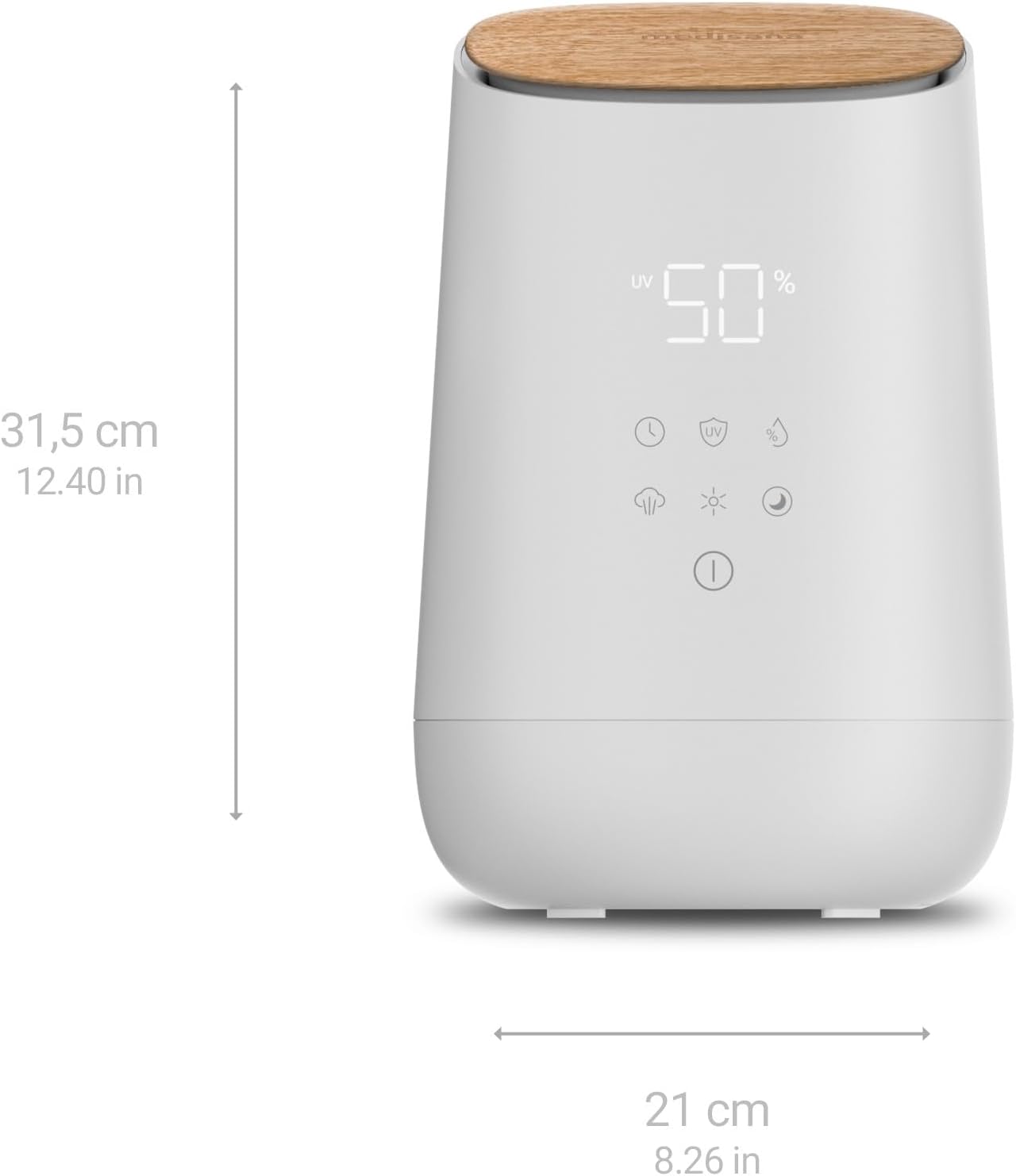 medisana AH 680 Luftbefeuchter und Aroma Diffusor, Lufterfrischer für die Wohnung, Raumbefeuchter elektrisch mit Timerfunktion für Schlafzimmer, Kinderzimmer, Schlafmodus und integriertes Aromafach mit Hygrometer und einstellbarem Zielwert | قیمت یورویی 57.55€