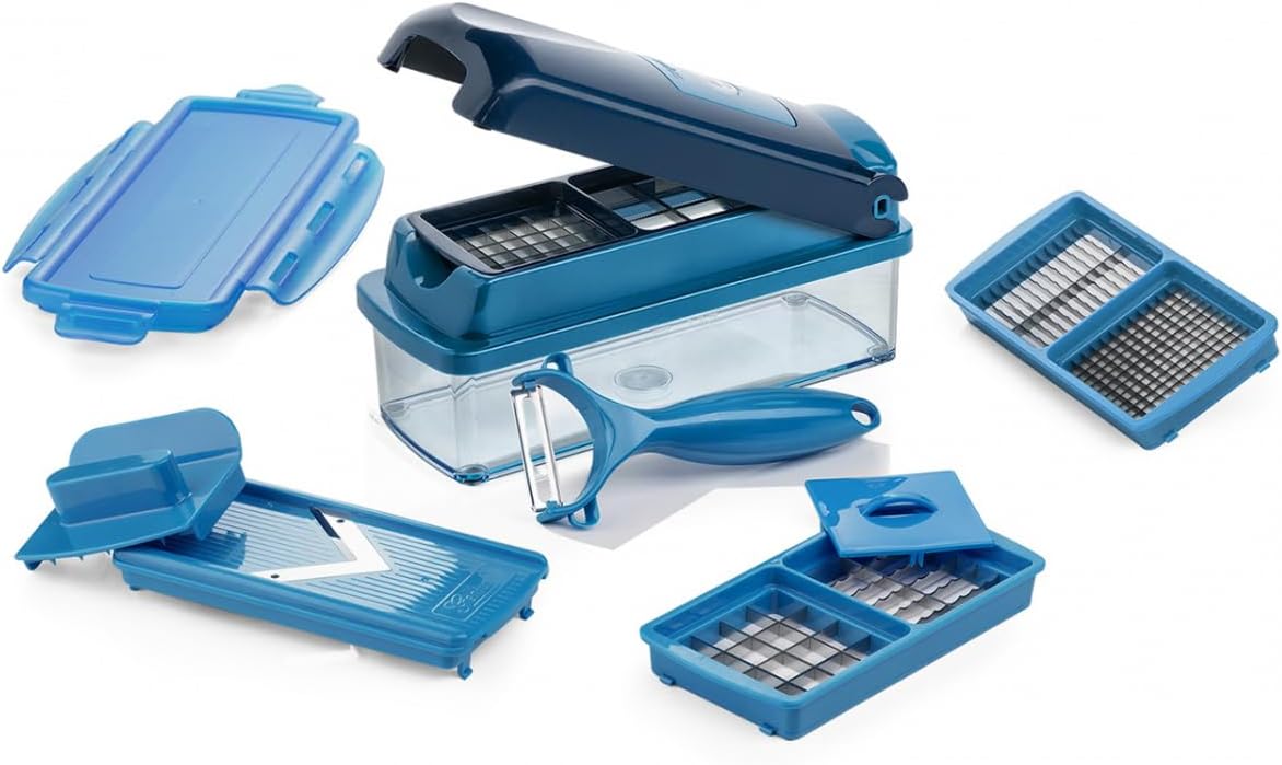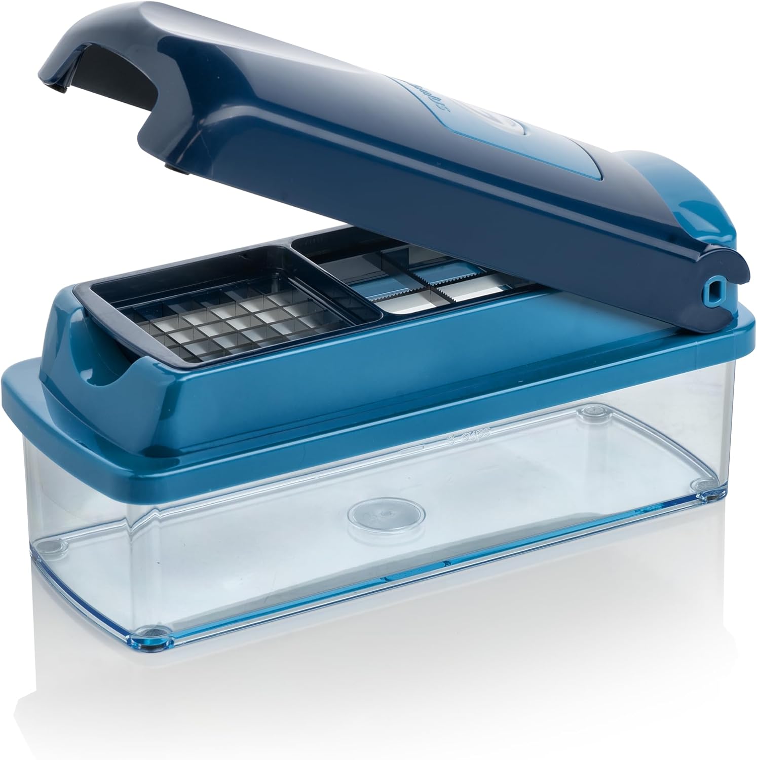 Genius Nicer Dicer Smart Gemüseschneider 10 tlg. Gemüsehobel Küchehelfer Multi Zerkleiner für Reiben Würfeln, Salatschneider Obstschneider manuell, 800 ML Behälter mit Deckel blau | قیمت یورویی 37.94€
