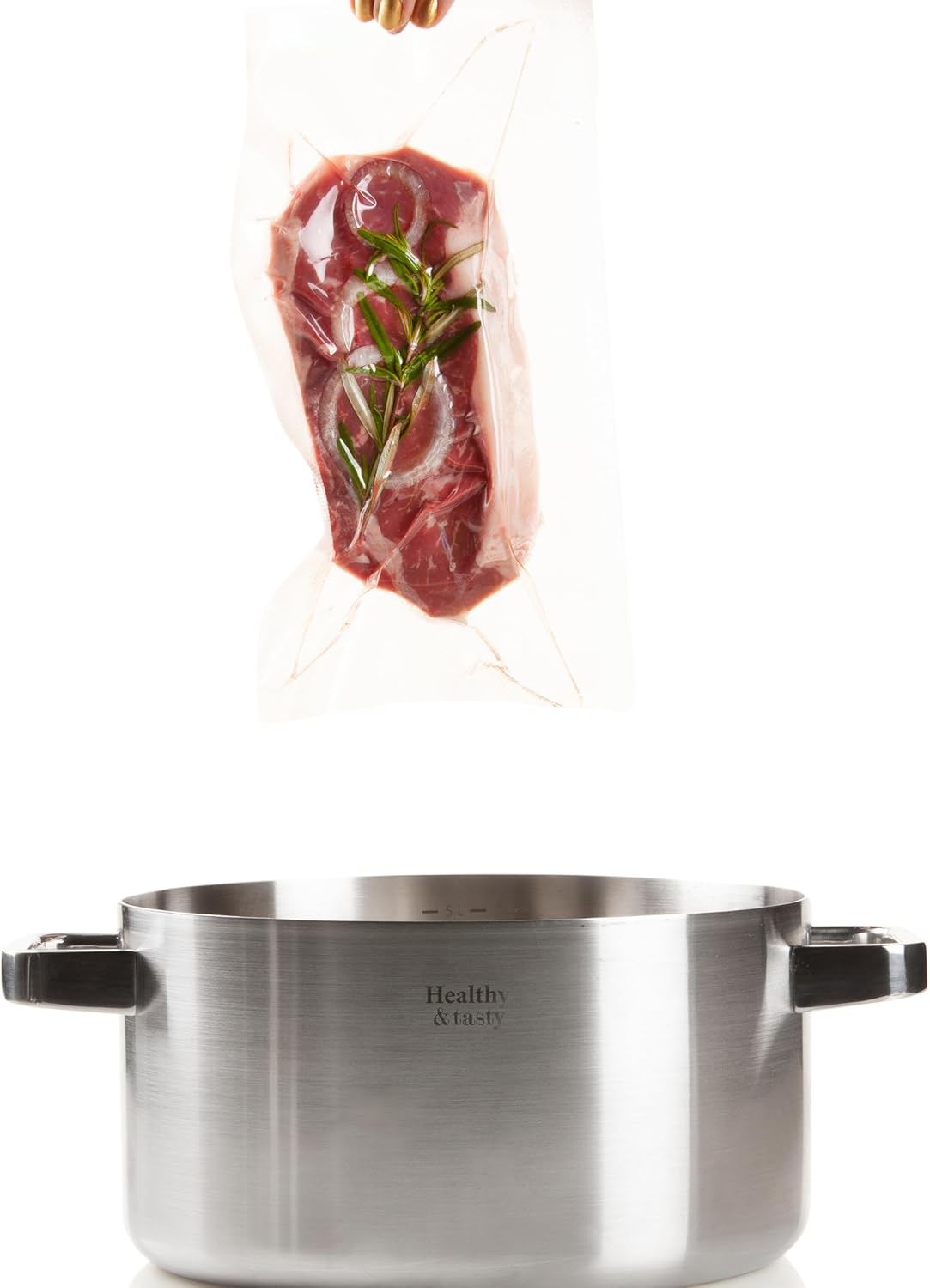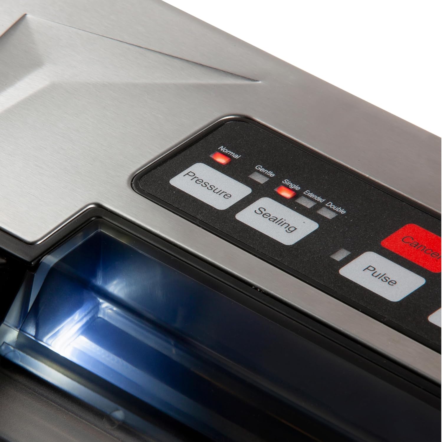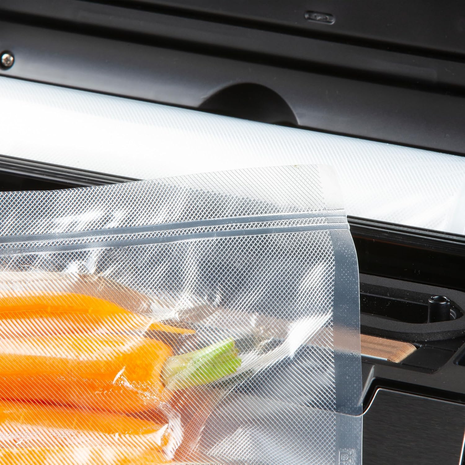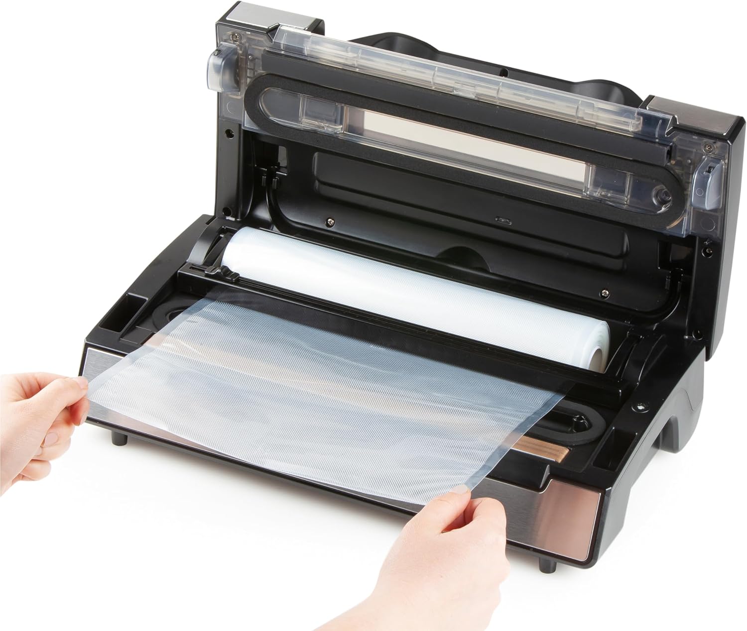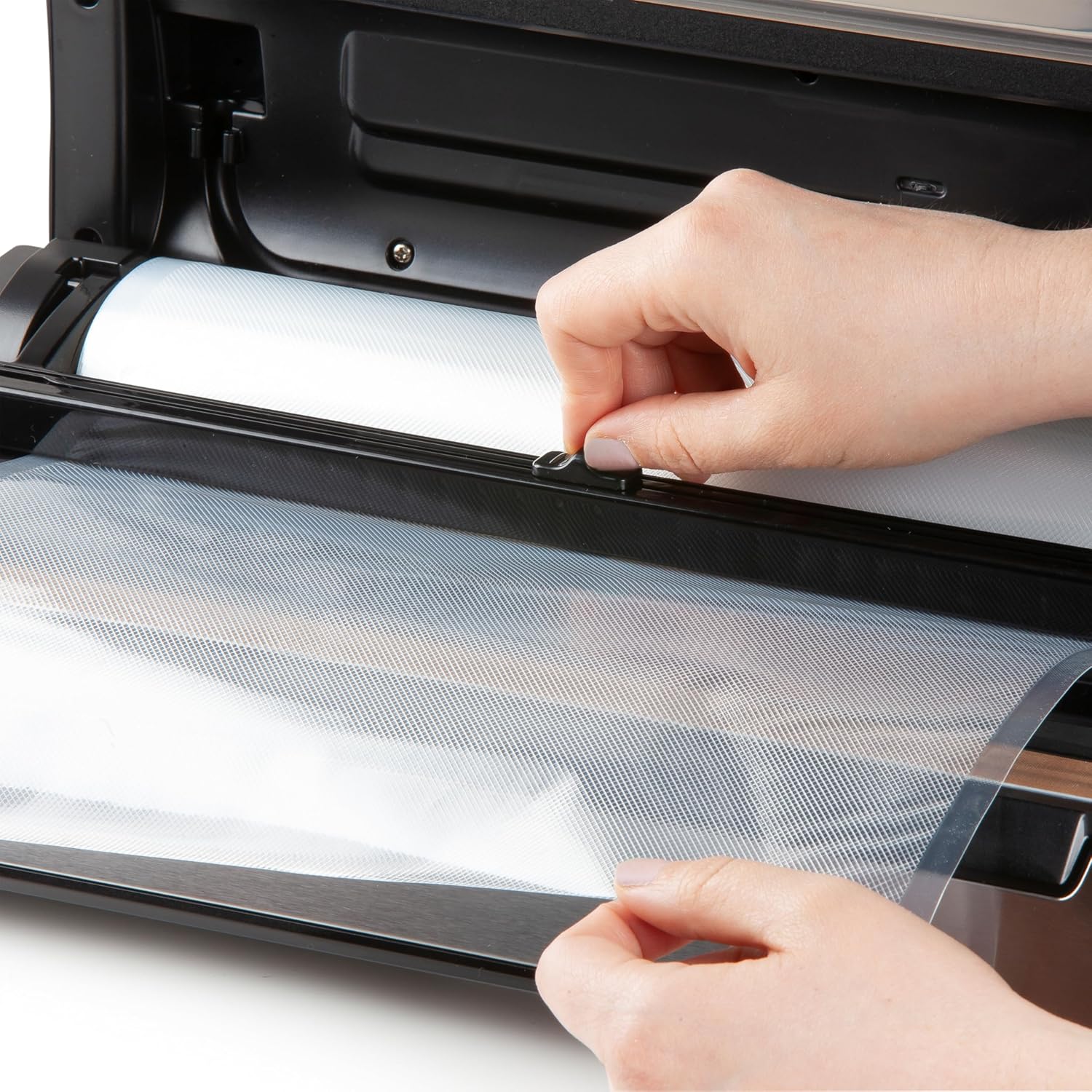 Vermeidet Verschwendung und verlängert die Haltbarkeit von Nahrungsmitteln mit Erhalt von Geschmack, Nahrungsstoffen und Frische Für Vakuumaufbewahrung von Gemüse, Fisch, Fleisch usw. im Kühlschrank oder Gefrierfach Die Beutel sind koch-, spülmaschinen-, mikrowellen- und einfriergeegnet und eignen sich ideal zum Sous-vide-Garen. Mit sowohl automatischer als auch manueller Funktion für mehr Präzision Anpassbare Schweißzeit für trockene, feuchte oder nasse Zutaten. Einstellbarer Druck für empfindliche Lebensmittel. Integrierter Platz für Rollen und Schneidemesser zum Zuschnitt des Beutels auf Maß. Druck: -0,9 bar - Geschwindigkeit: 20 l/min.. Doppelte Schweißnaht von 2 x 2,5 mm für einen optimalen Verschluss. Inklusive Rolle 28 cm x 5 m. Griff zur einfachen Bedienung 230 V - 50 Hz - 130 W | قیمت یورویی : 127.19€