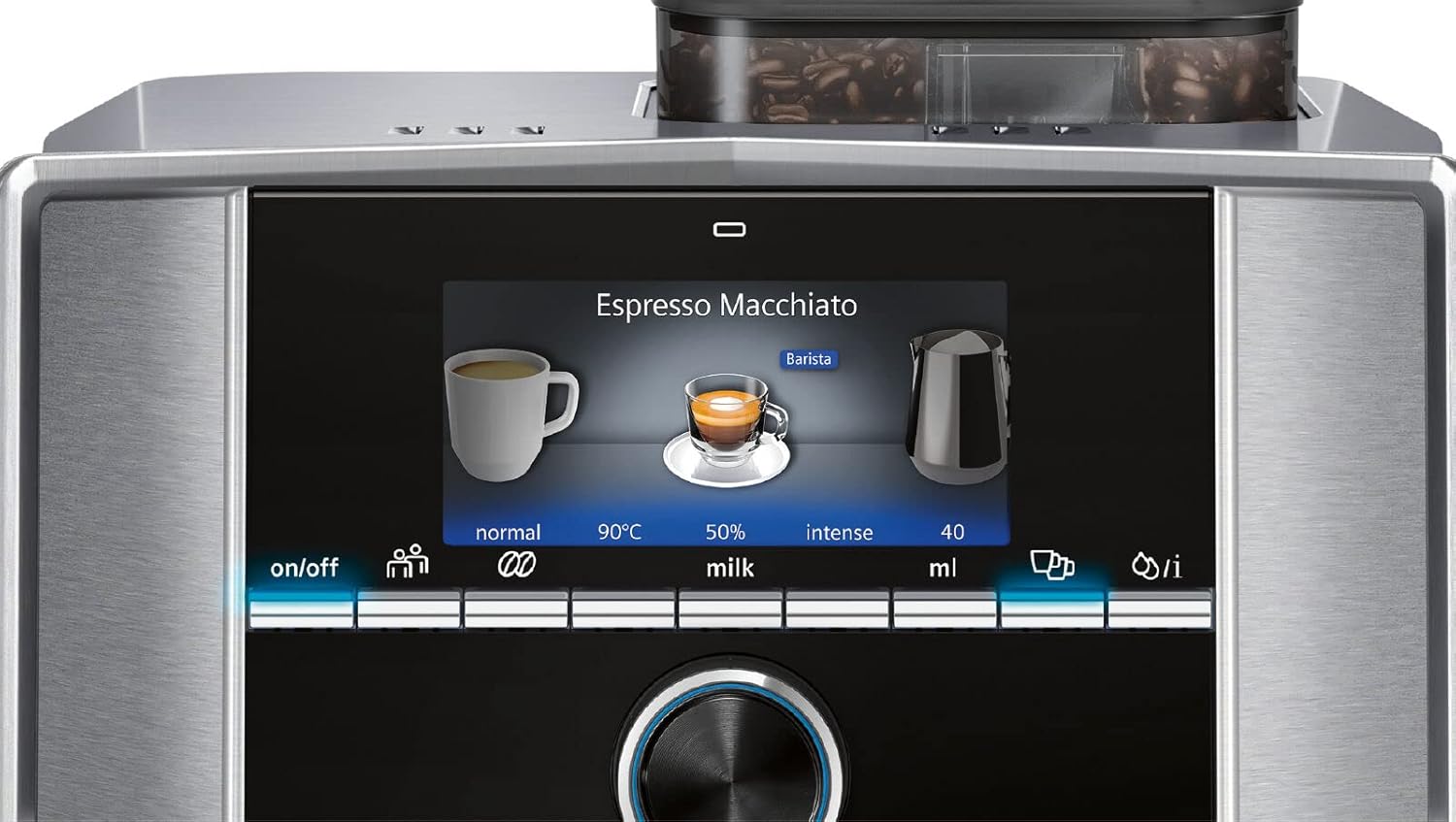 دستگاه قهوهساز تمام اتوماتیک زیمنس EQ.9 Plus Connect s500 TI9553X1RW با صفحه لمسی - برای تهیه همزمان دو فنجان - حالت باریستا -، 2.3 لیتر، رنگ: استیل ضد زنگ (زبان صفحه نمایش آلمانی نیست) - تکی