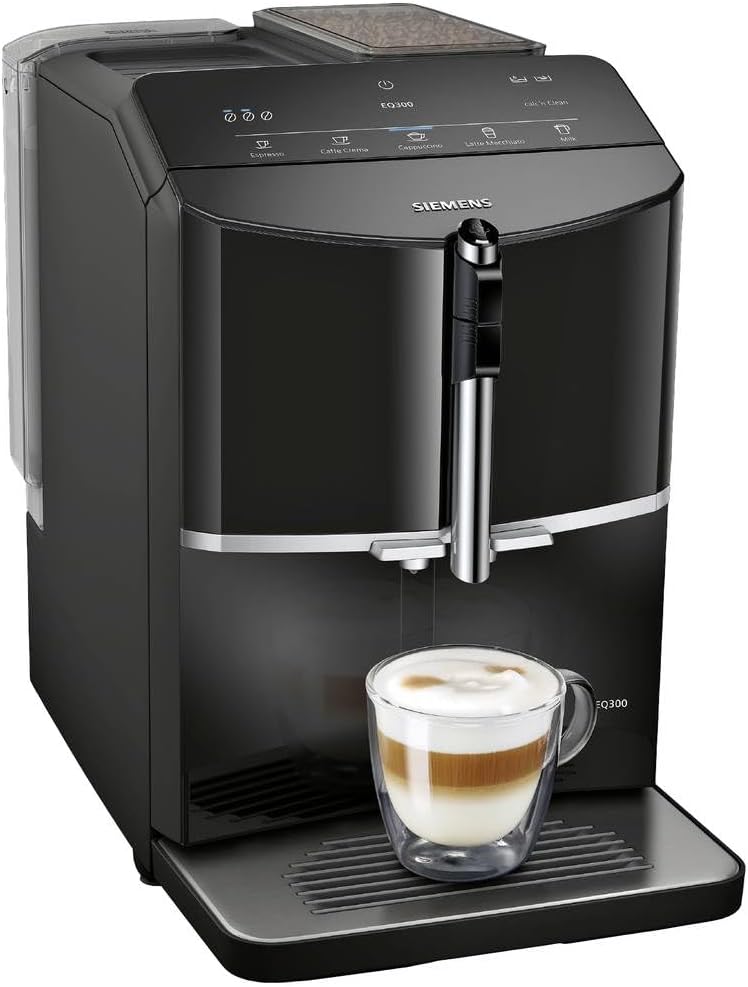 Siemens Kaffeevollautomat EQ300 TF301E19, für viele Kaffeespezialitäten, Milchaufschäumer, Keramikmahlwerk, OneTouch-Funktion, 1300 W, piano black | قیمت یورویی 319.07€