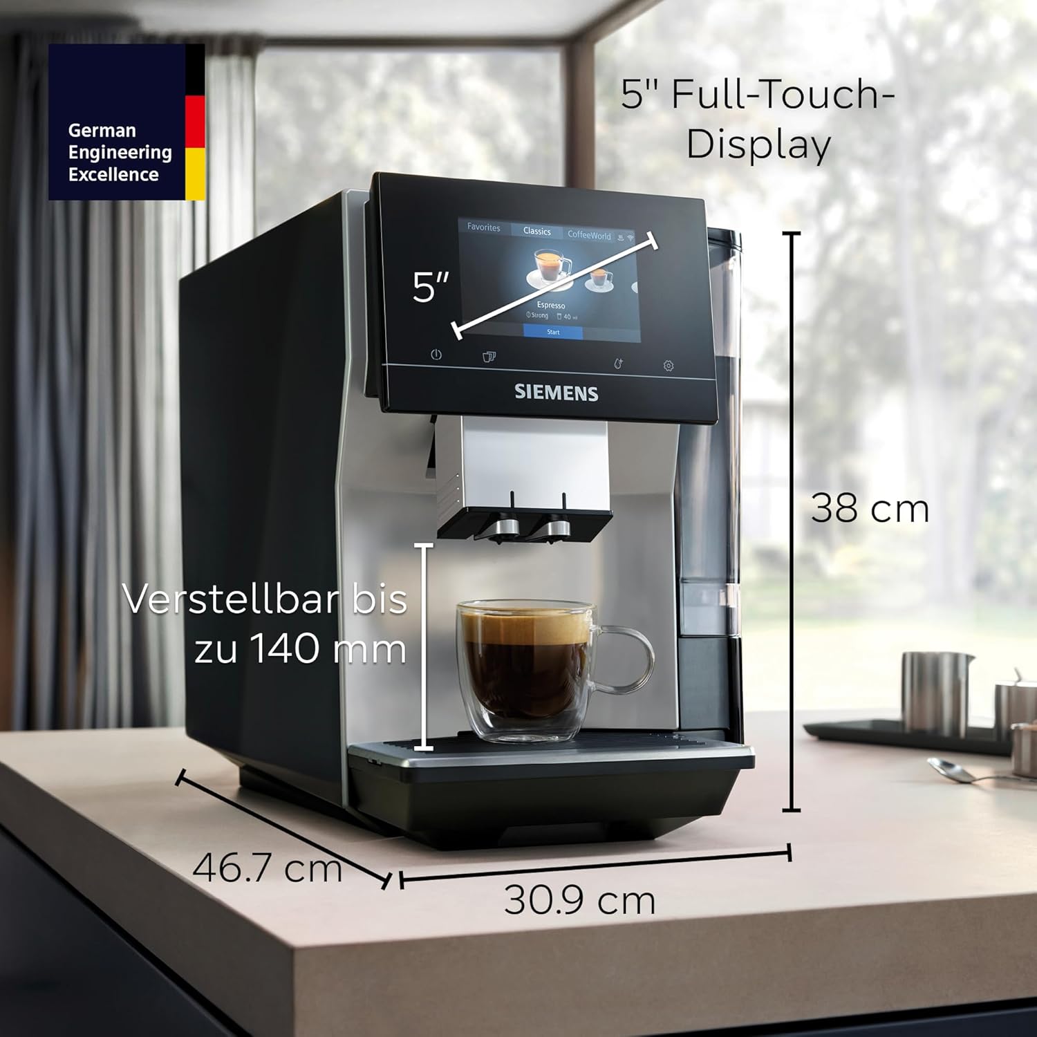 Siemens Kaffeevollautomat EQ700 classic TP715E17, App-Steuerung, Cold Brew, Full-Touch-Display, bis zu 10 individ. Kaffeekreationen als Favoriten, autom. Dampfreinigung, 1500 W, inox silver metallic | قیمت یورویی 899.99€