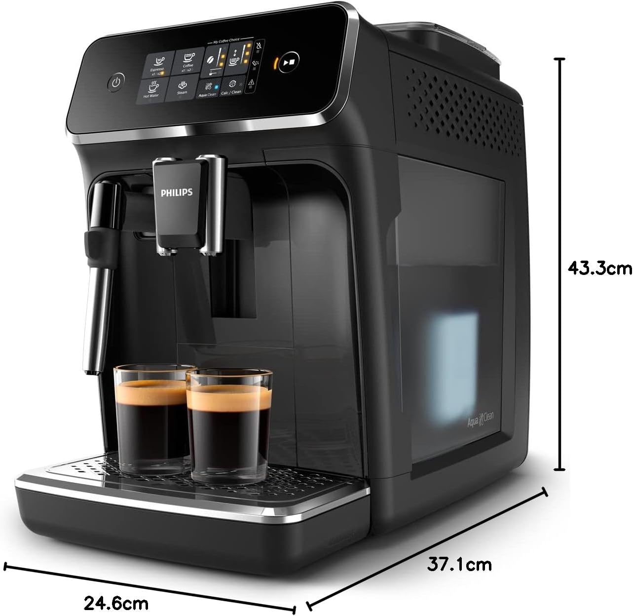 دستگاه قهوه ساز تمام اتوماتیک PHILIPS Series 2200 - کف کننده شیر کلاسیک، صفحه نمایش لمسی بصری، مشکی براق (EP2221/40)