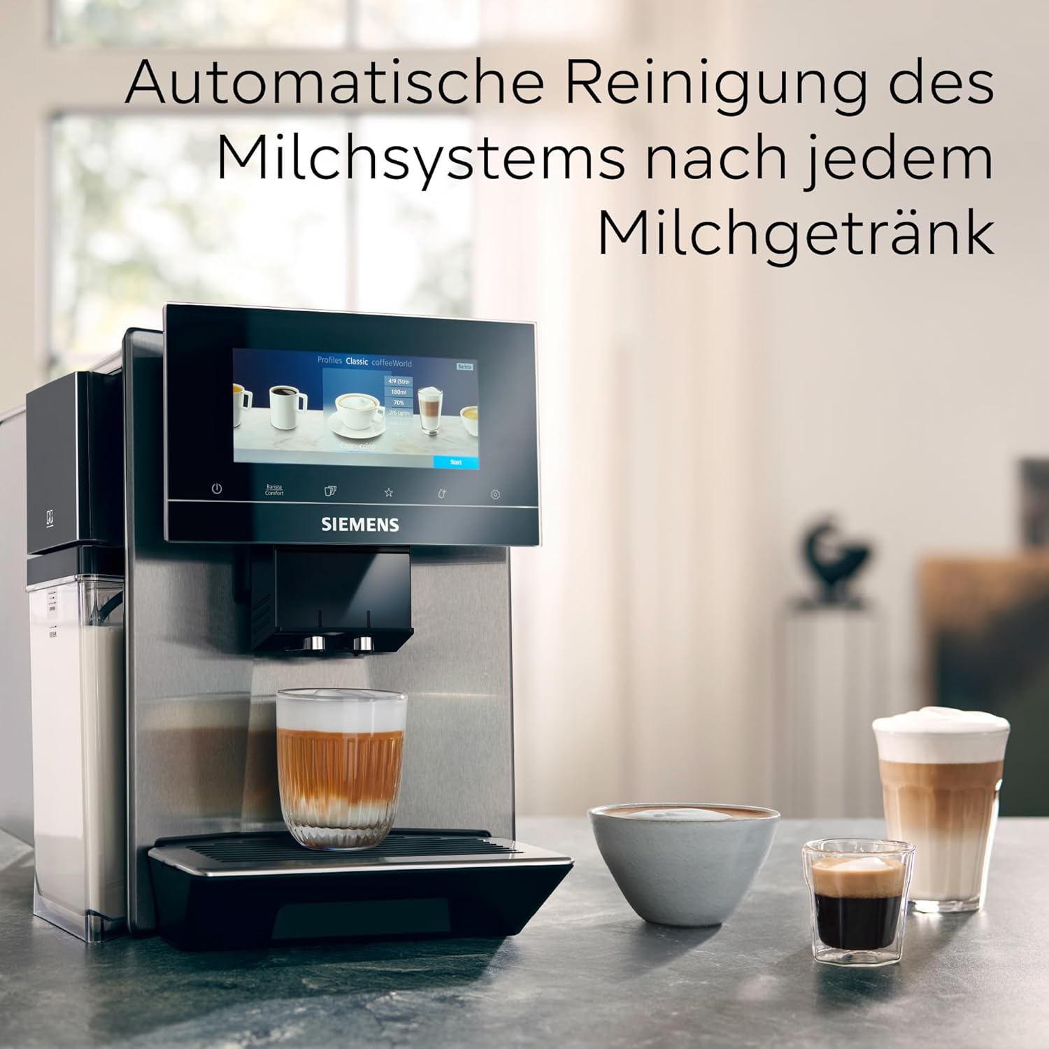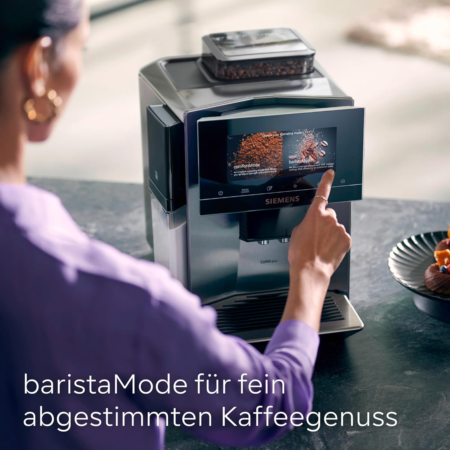 SIEMENS Kaffeevollautomat EQ900 plus TQ903DZ3, automat. Reinigung und Entkalkung, App-Steuerung, intuitives Full-Touch-Display, Barista-Modus, Geräuschreduzierung, Premiummahlwerk, 1500 W, edelstahl | قیمت یورویی 1799€