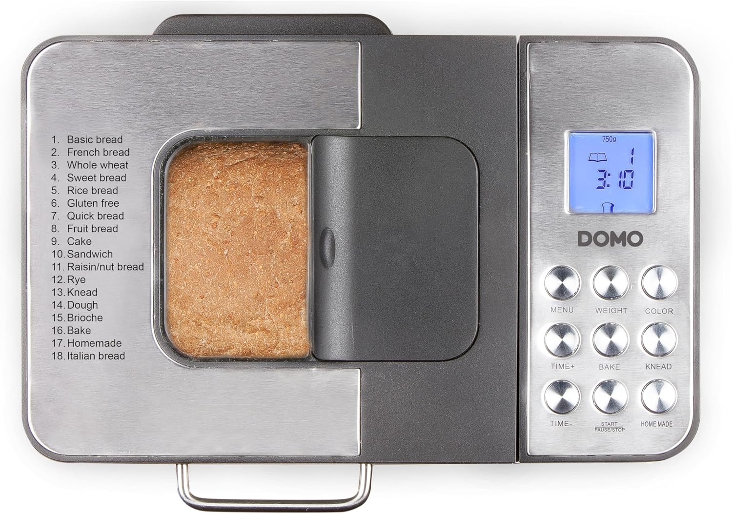 دستگاه نانپزی DOMO B3971، 500-750-1000 گرم، 18 برنامه - شامل دیسپنسر و برنامه بدون گلوتن، جنس استیل ضد زنگ