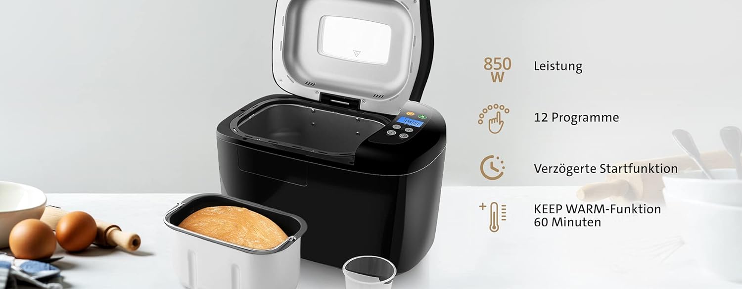 ETA Brotbackautomat Harmony 2 I 850W I 12 Automatikprogramme I Warmhaltefunktion I Timer I Antihaftbeschichtung I Marmelade und Joghurt Programm