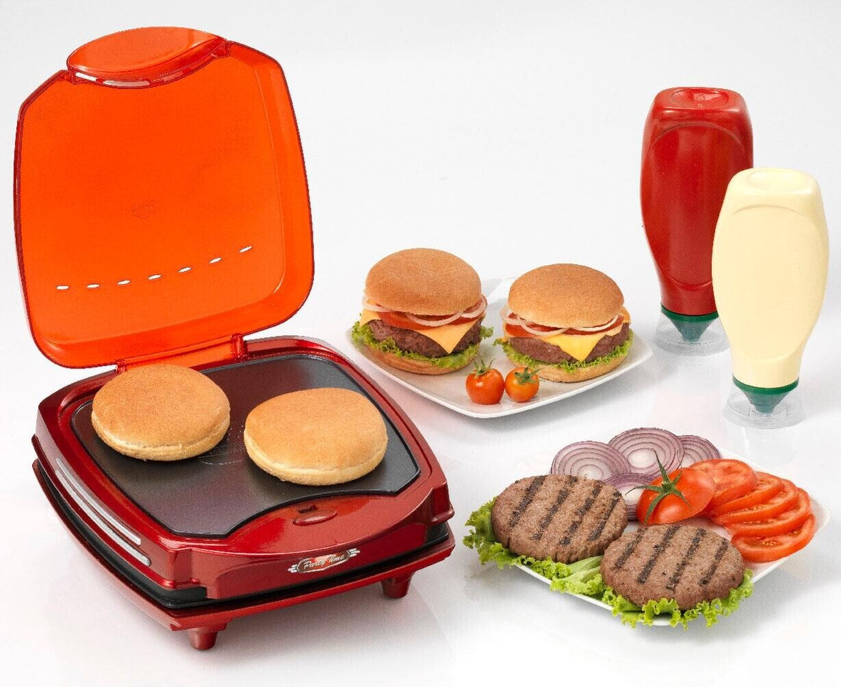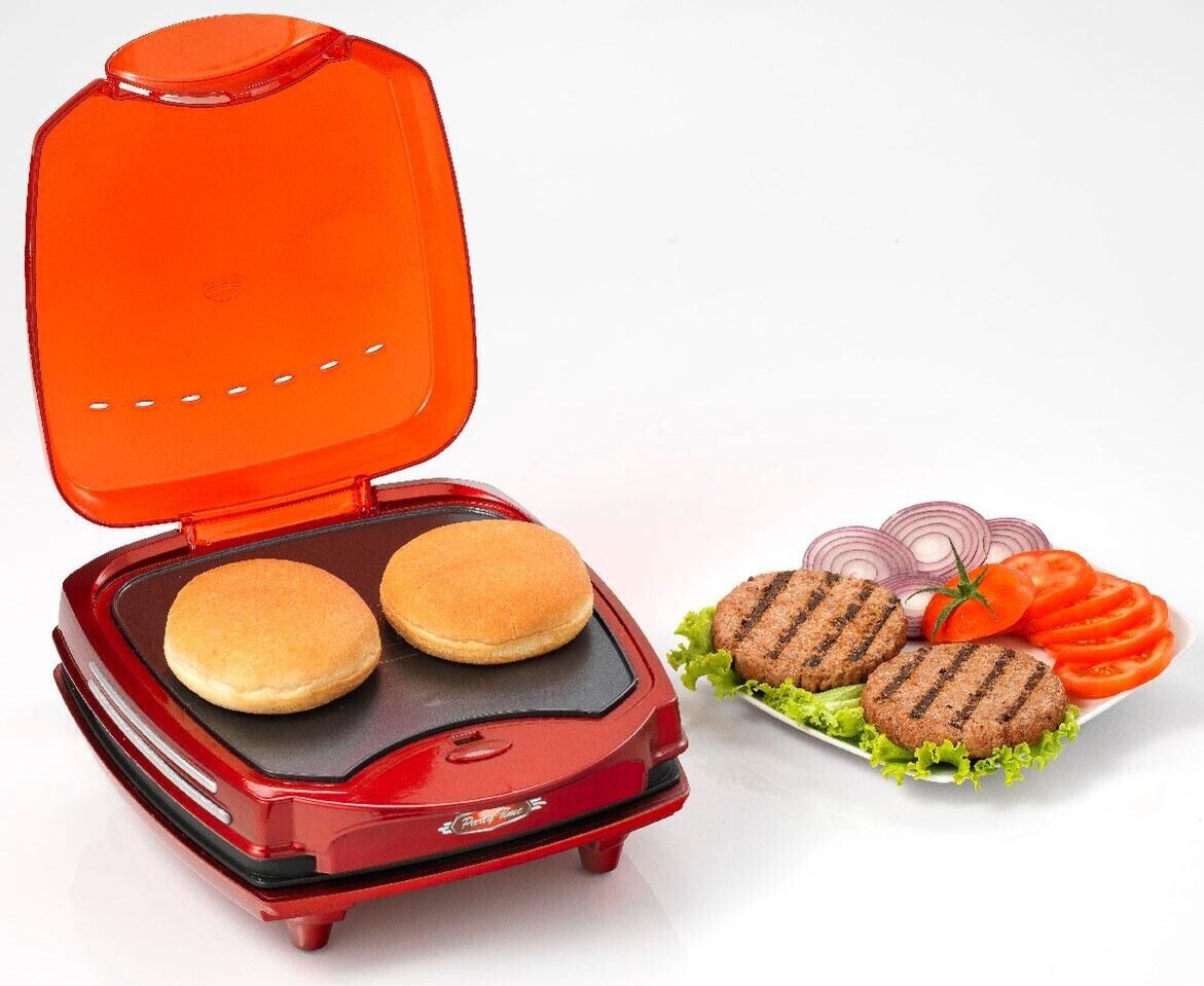 همبرگر ساز Ariete مدل Party Time با طراحی فانتزی، رنگ قرمز شاد و عملکرد ساده، انتخابی جذاب برای تهیه همبرگر سالم در خانه است.