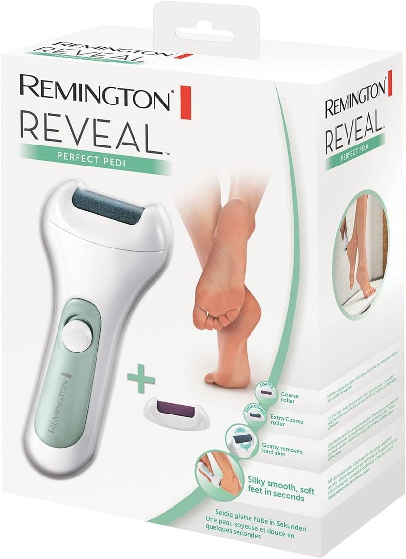 Remington Hornhautentferner Perfect Pedi REVEAL CR4000, rotierend, inkl. 2 austauschbare Rollen, weiß/mintgrün لینک آمازون : https://www.amazon.de/dp/B01BY2K9TO?th=1&psc=1 غلتک چرخان برای از بین بردن ملایم پینههای ناخواسته و پوست خشک ملایم برای پاها، بدون ایجاد خراش اولین نتایج پس از تنها یک بار استفاده ۲ چرخ قابل تعویض باتری خور: ۲ عدد باتری قلمی وارتا (AA) به همراه دستگاه ارائه میشود