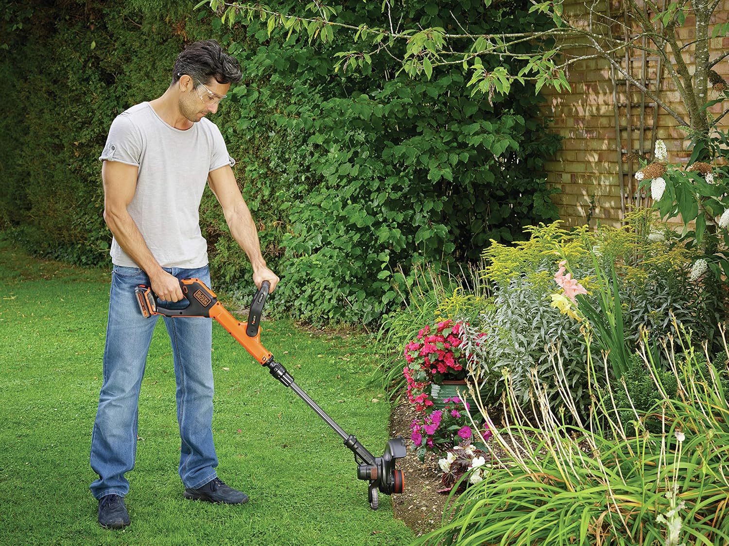 دستگاه چمن زنی BLACK+DECKER با باتری و شارژر، موبر لبه چمن، برس برش با امتداد خط با لمس یک دکمه (18 ولت 2.0 آمپر ساعت، عرض برش 28 سانتی متر) STC1820EPC