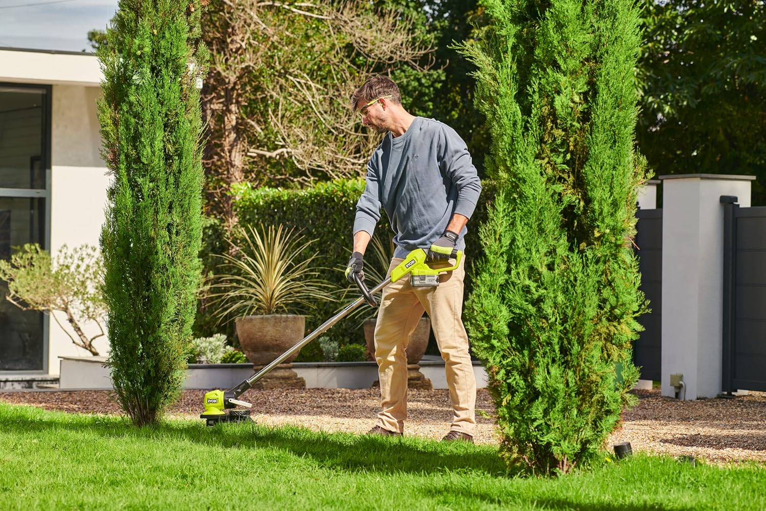 RYOBI 18 V ONE+ Akku-Rasentrimmer mit Radführung RY18LT33A-0 (33 cm Kantenschneidefunktion mit Fußsteuerung, Ø Fadenspule 1 x 1,65 mm, ohne Akku und Ladegerät) | قیمت یورویی 119.75€