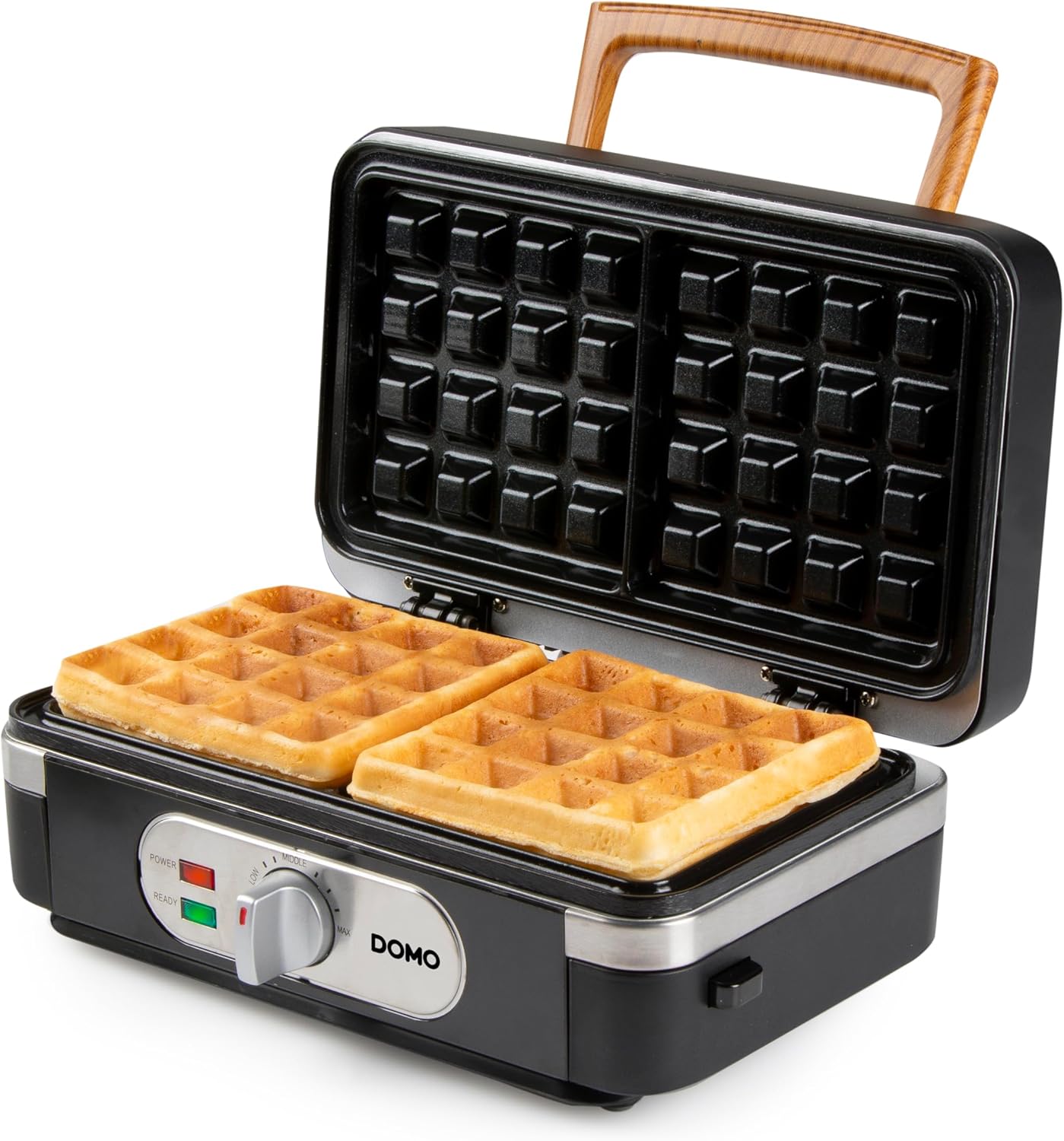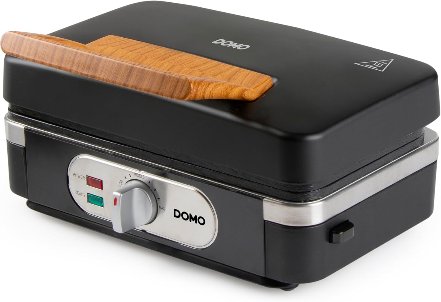 دستگاه چند منظوره 3 در 1 DOMO DO9278C - ساندویچ ساز - وافل ساز - گریل تماسی - 1100 وات - طراحی مشکی مات با دسته چوبی