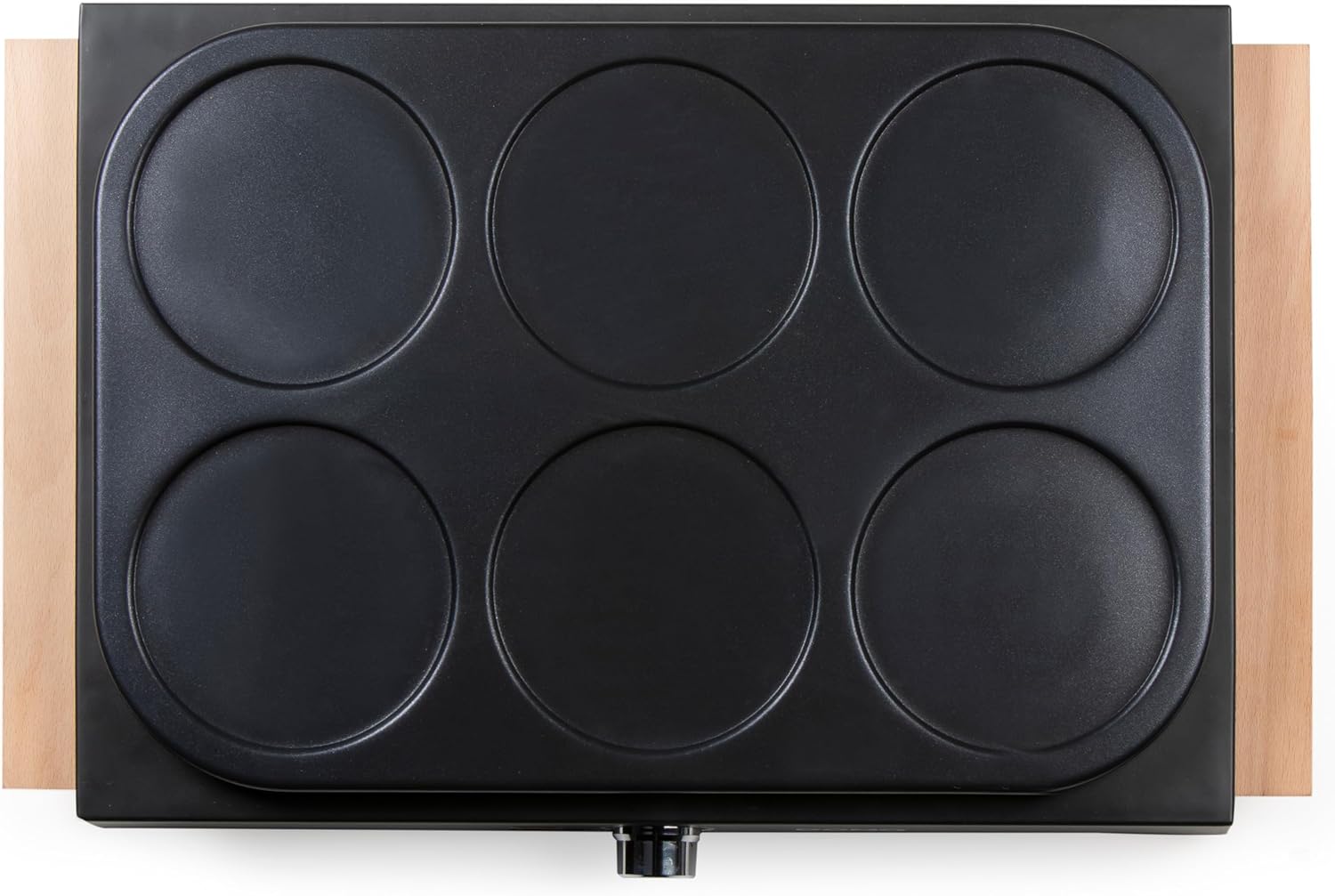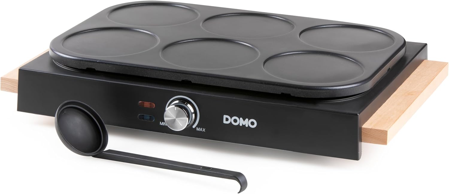 FÜR 6 AMERIKANISCHE PANCAKES GLEICHZEITIG – Ideal für die ganze Familie, denn mit dem DOMO DO8717P Crêpemaker bereiten Sie sechs Pancakes gleichzeitig auf der Crepe Pancake Maker zu VIELSEITIG VERWENDBAR FÜR MEHR ALS NUR PANCAKES – Ob Pancakes oder Spiegeleier, dieser Crepes Maker ist perfekt für Frühstück, Brunch oder ein schnelles Mittagessen ILAG-ANTIHAFTBESCHICHTUNG FÜR LEICHTES REINIGEN – Die PFOA-freie Beschichtung der Crêpemaker DO8717P sorgt dafür, dass nichts anklebt und die Reinigung mühelos gelingt STILVOLLES DESIGN MIT HOLZGRIFFEN – Die hochwertige Verarbeitung mit Holzdetails macht diesen DOMO Crêpemaker zum stilvollen Highlight in jeder Küche REGELBARE TEMPERATUR FÜR PERFEKTE ERGEBNISSE – Mit dem Drehregler am Crepes Maker DO8717P stellen Sie bequem die ideale Hitze zum Backen ein TEIGLÖFFEL INKLUSIVE FÜR GLEICHMÄSSIGE PORTIONEN – Der mitgelieferte Löffel hilft, die Pancake-Menge auf der Crepe Pancake Maker optimal zu dosieren | قیمت یورویی : 51.99€