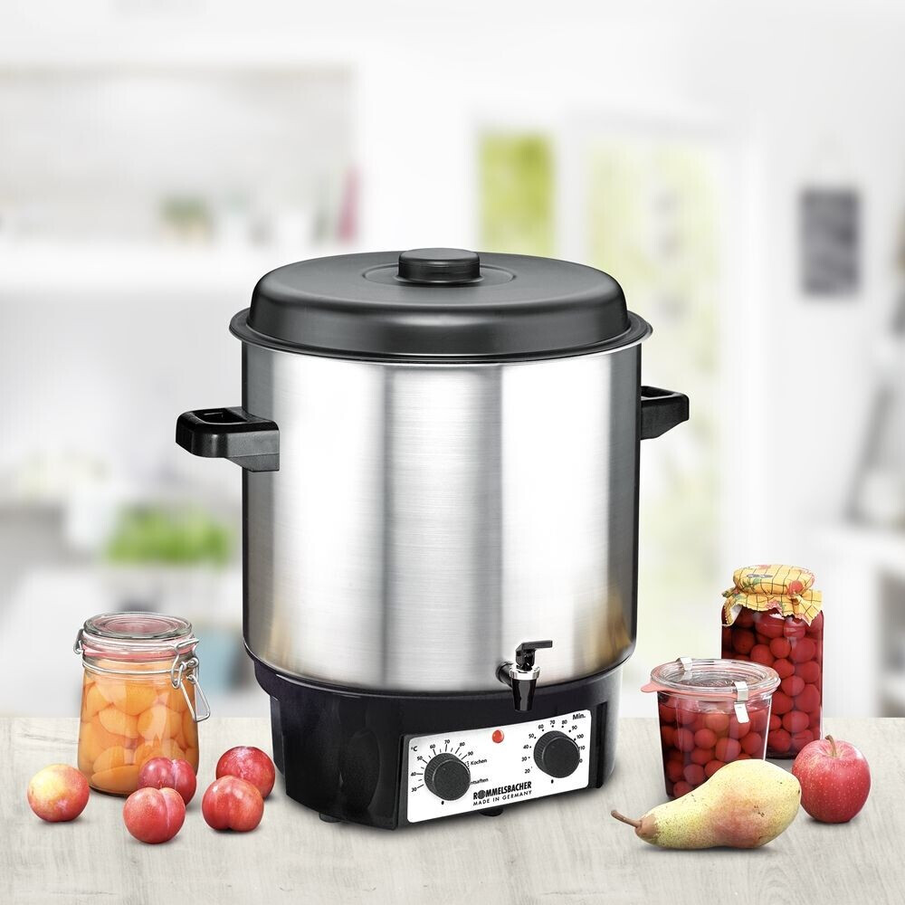 دستگاه ROMMELSBACHER KA 2004/E یک کنسرو اتوماتیک قدرتمند با ظرفیت ۲۷ لیتر و تایمر ۱۲۰ دقیقه برای حفظ و پخت مواد غذایی در خانه است.