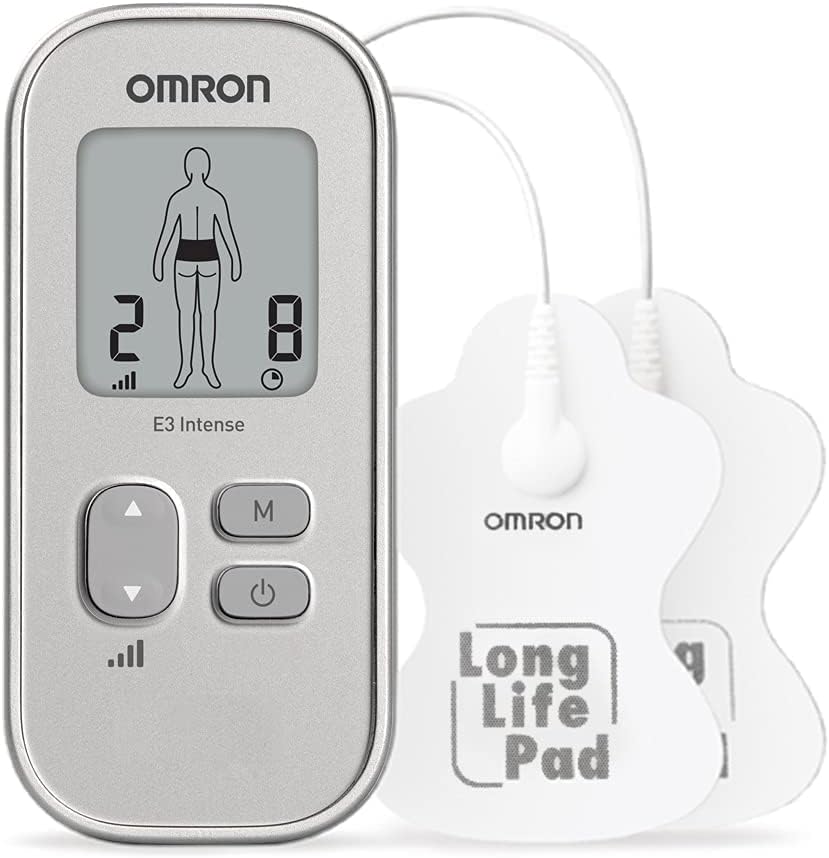 OMRON E3 Intense tragbares TENS Gerät für Schmerztherapie – Medikamentenfreie Neuropathie Schmerzlinderung mit 6 Programmen für Rücken, Schultern, Gelenke & Muskeln, TENS/EMS Gerät Silver Single | قیمت یورویی 47.99€