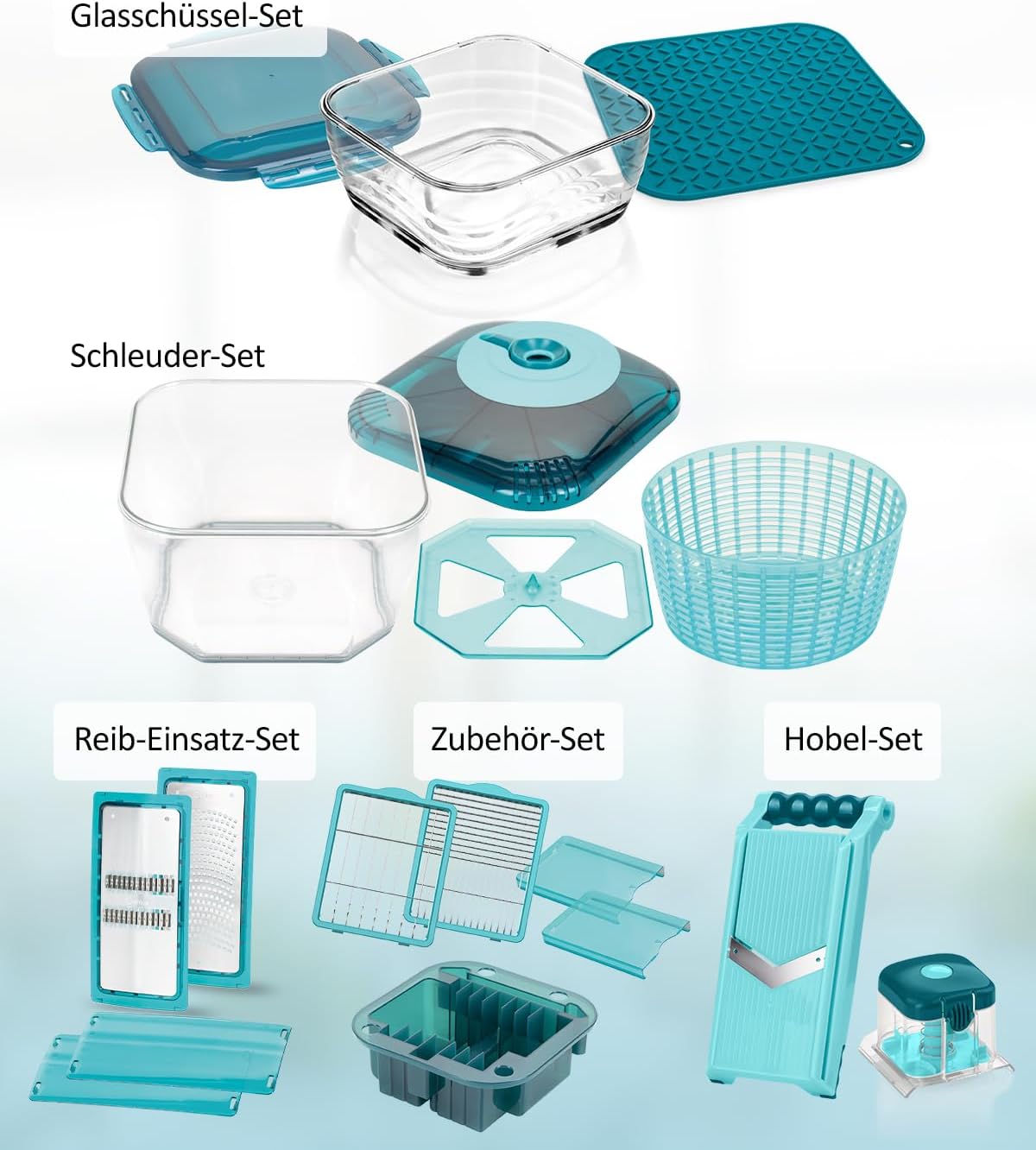 Nicer Dicer Chef Professional Deluxe Gemüseschneider manuell 39-tlg, Gemüsehobel mit 5.2L Behälter und 2.8L Glassschüssel Deckel, Spiralschneider Pommesschneider Küchenhelfer mit einfacher Reinigung | قیمت یورویی 149.94€