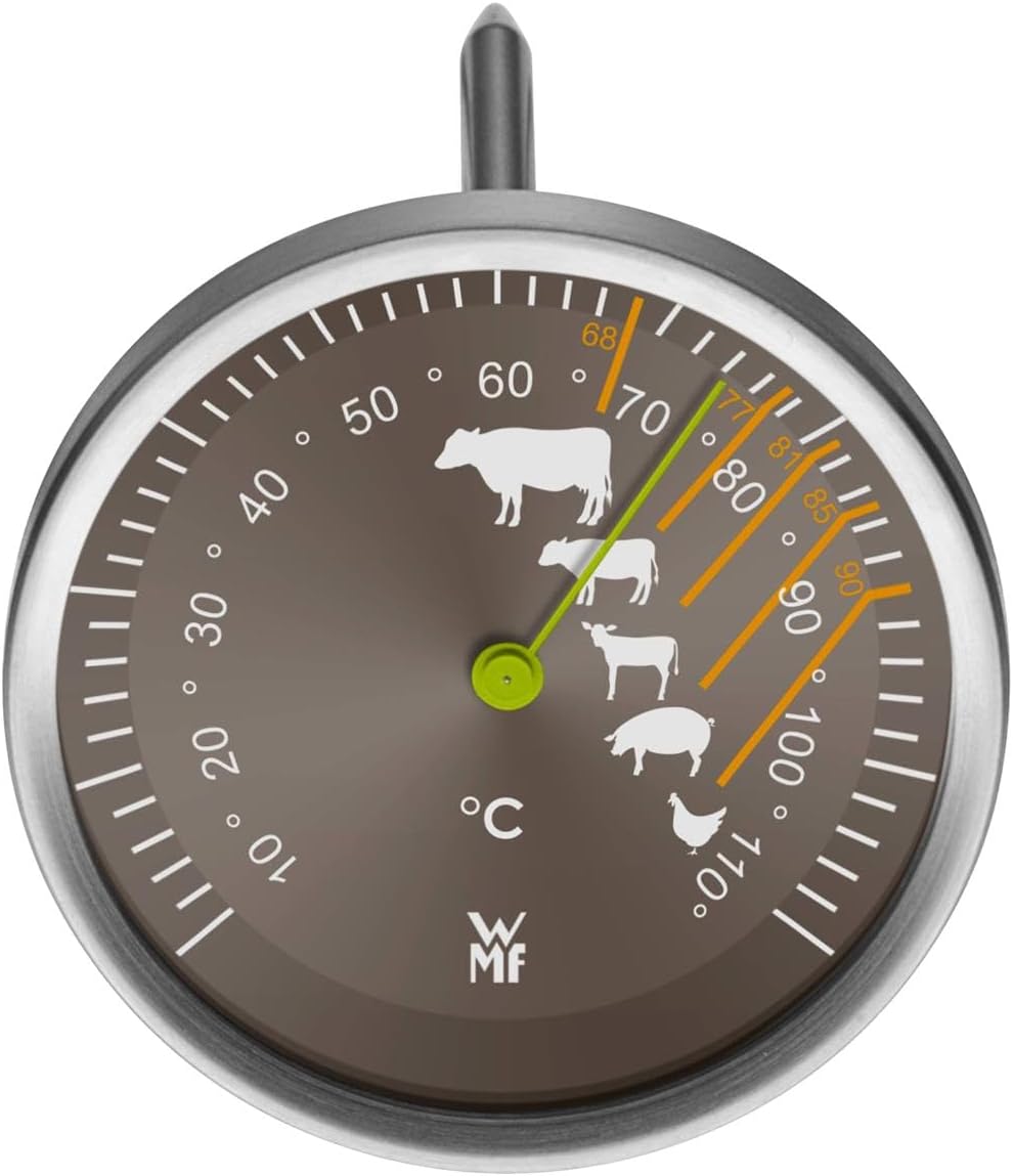 WMF Fleischthermometer analog 6,3 cm, Bratenthermometer mit Garpunkte-Markierungen für Steak Rind Kalb Lamm Schwein Geflügel, Sonde bis 110°C | قیمت یورویی 19.15€