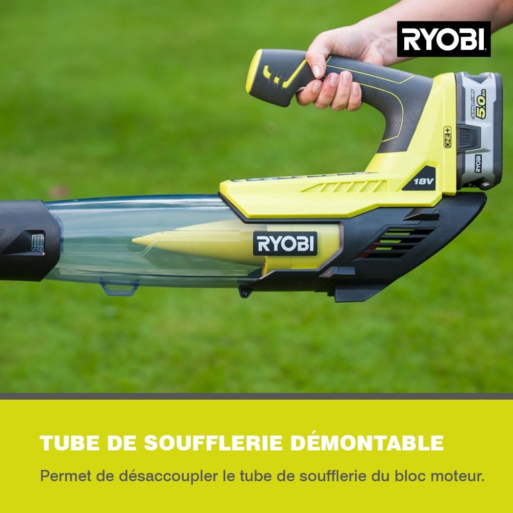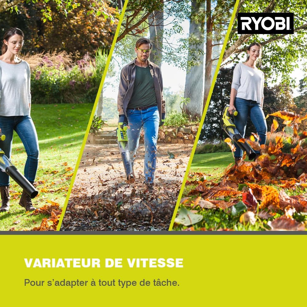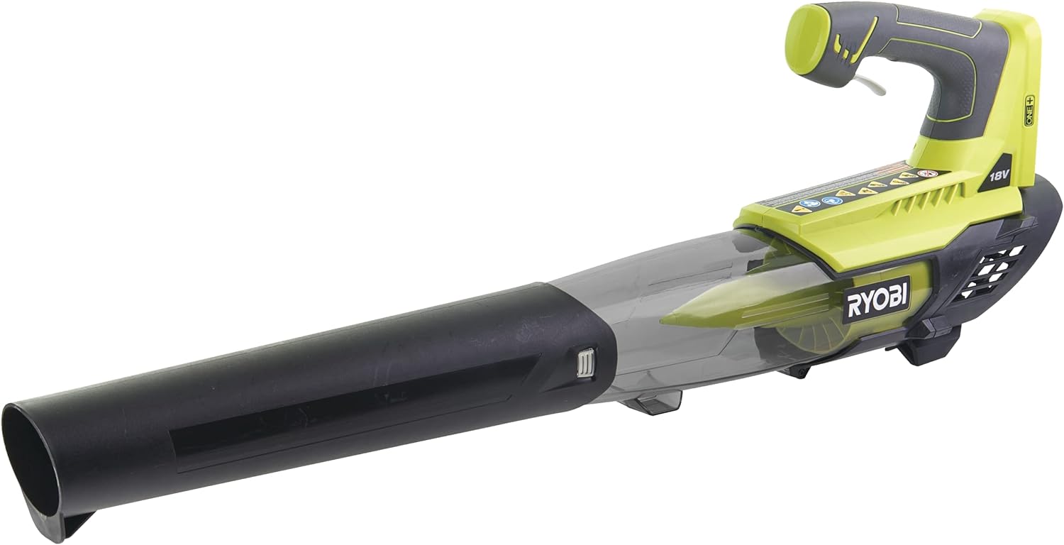 دمنده برگ شارژی RYOBI 18 V ONE+ OBL18JB (سرعت هوا 160 کیلومتر بر ساعت، حجم هوا 7.9 متر مکعب در دقیقه، فن جت توربین، کنترل سرعت متغیر، بدون باتری و شارژر در جعبه)