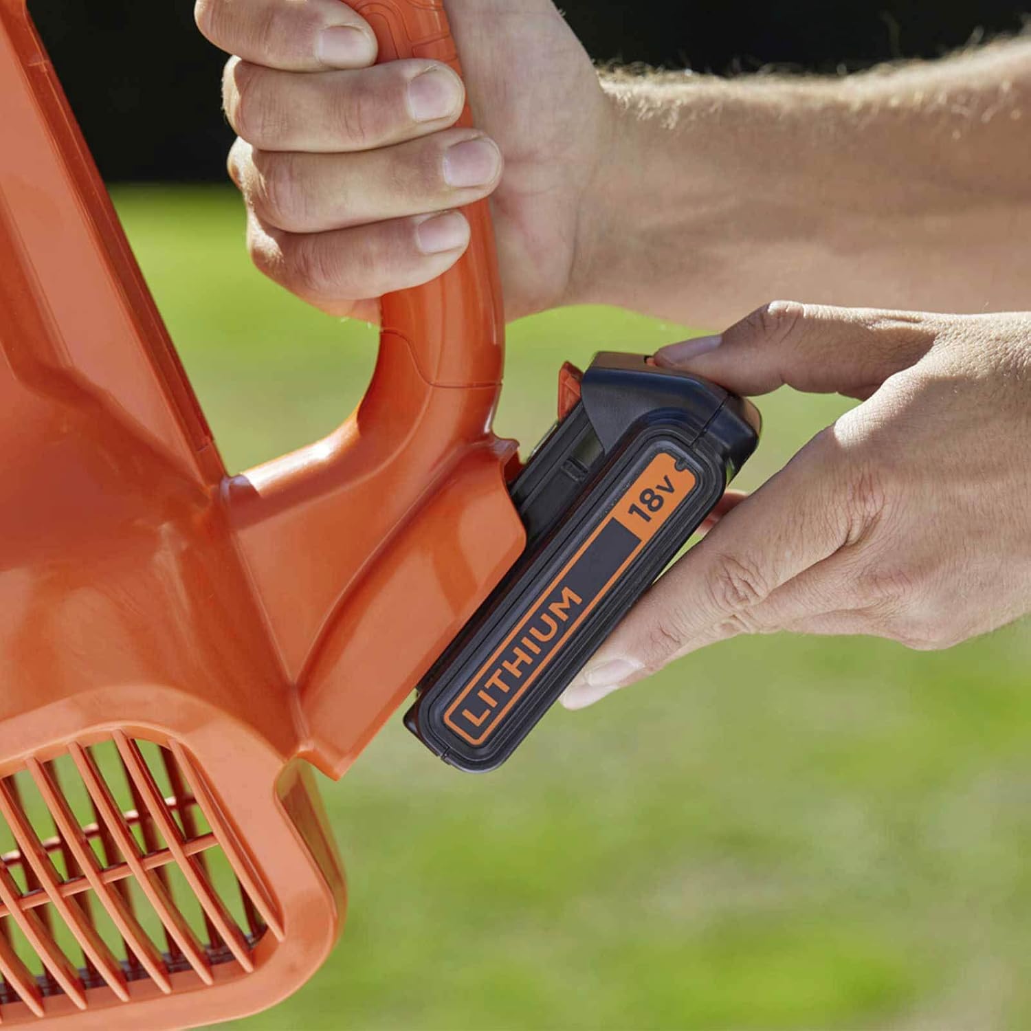 دمنده برگ محوری بی سیم Black+Decker (18 ولت، سرعت دمش بالا 145 کیلومتر در ساعت، حجم هوا 577 متر مکعب در ساعت، لیف خراش یکپارچه، برای پاسیو، مسیرها، مسیرها، بدون باتری + شارژر) BCBL200B
