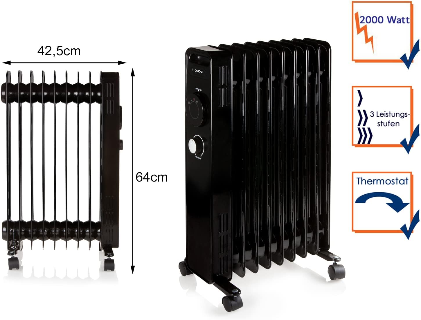 DOMO DO7327R Ölradiator - 3 Einstellungen - 2000 W - 9 Hitzelemente, schwarz | قیمت یورویی 42.83€