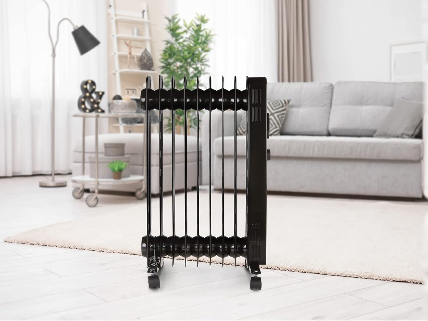Angenehme, kraftvolle Wärmeverteilung Der Raum bleibt lange warm, auch nach dem Abschalten 9 Wärmeelemente; 3 Leistungsstufen Einstellbares Thermostat; Überhitzungsschutz Kippsicherung Anti-Frost-Einstellung Integrierter Handgriff; 4 praktische Schwenkräder Kabelaufbewahrungsfach Abmessungen: 42,5 x 28 x 64 cm 230 V - 50 Hz - 2000 W | قیمت یورویی : 42.83€