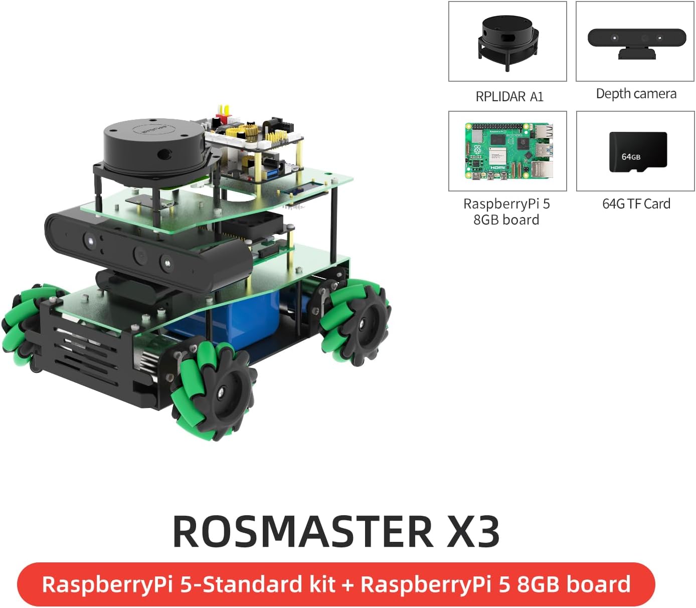 ربات برنامه نویسی Yahboom Raspberry Pi5 8GB ماژول تعامل صوتی دوربین عمقی ریدار، برای مهندسین مکانیک Silan 3D Mapping Python ROS2 آموزش به مدت 18 سال (Pi5 Standard Ver-با Pi5(8G)) Eu Pi5 Sta Ver-با Pi5(8g)