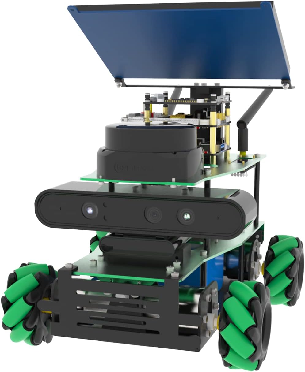【ROS Robot Learning Kit】The newly upgraded version is compatible with Orin Nano SUPER and Orin NX SUPER robot kits, and can provide stable power for the SUPER kits. We provide 5 ROS X3 development board versions, and multiple accessory versions are available. Orin Nano SUPER, Orin NX SUPER, Jetson Nano and RPi5. The performance issues of different development boards are different. 【AI Visual Explore】Equipped with ROS1/ROS2 operating system; ridar: can use voice to control multi-point navigation, supporting path planning and independent exploration and mapping;RTAB-3D mapping and navigation, and depth image data can be used to obtain real size information; AI visual depth gameplay: attitude detection, overall detection, and three-dimensional detection and recognition can be completed through MediaPipe development; YOLO model training, TensorRT. 【Multi-platform control】Compatible with a variety of remote control methods, including mobile phone remote control APP, game controller, ROS system, PC computer keyboard and Jupyter Lab control, etc. Suitable for multi-scene control use. *Mobile APP control supports iOS/Android. Compatible with ROS1/ROS2, Ubuntu22.04 【Excellent hardware configuration】Aluminum alloy chassis, 360° omnidirectional Mecanum wheel, all-round movable robot; optional radar, high-quality depth camera, voice alternation module, display screen, professionally designed expansion according to different versions panel. Professional ROS robot supports more DIY development. Users can re-develop existing courses and learn from them.(If you would like custom accessories, please contact Yahboom) 【Rich materials and technical support】Provide 204 bilingual video courses and online technical help. The course content includes: ROSMASTER X3 assembly, Linux operating system, ROS and openCV series courses, depth camera and radar exploration, which is a deep learning process. From pictorial navigation lectures and simple to deep learning measured navigation. Material website: http://www.yahboom.net/study/ROSMASTER-X3 | قیمت یورویی : 689€