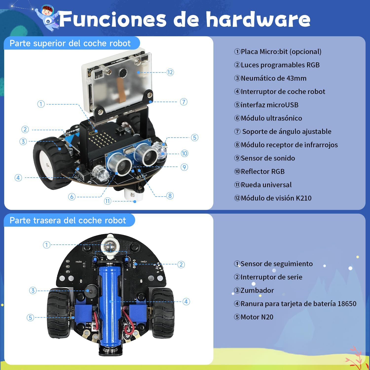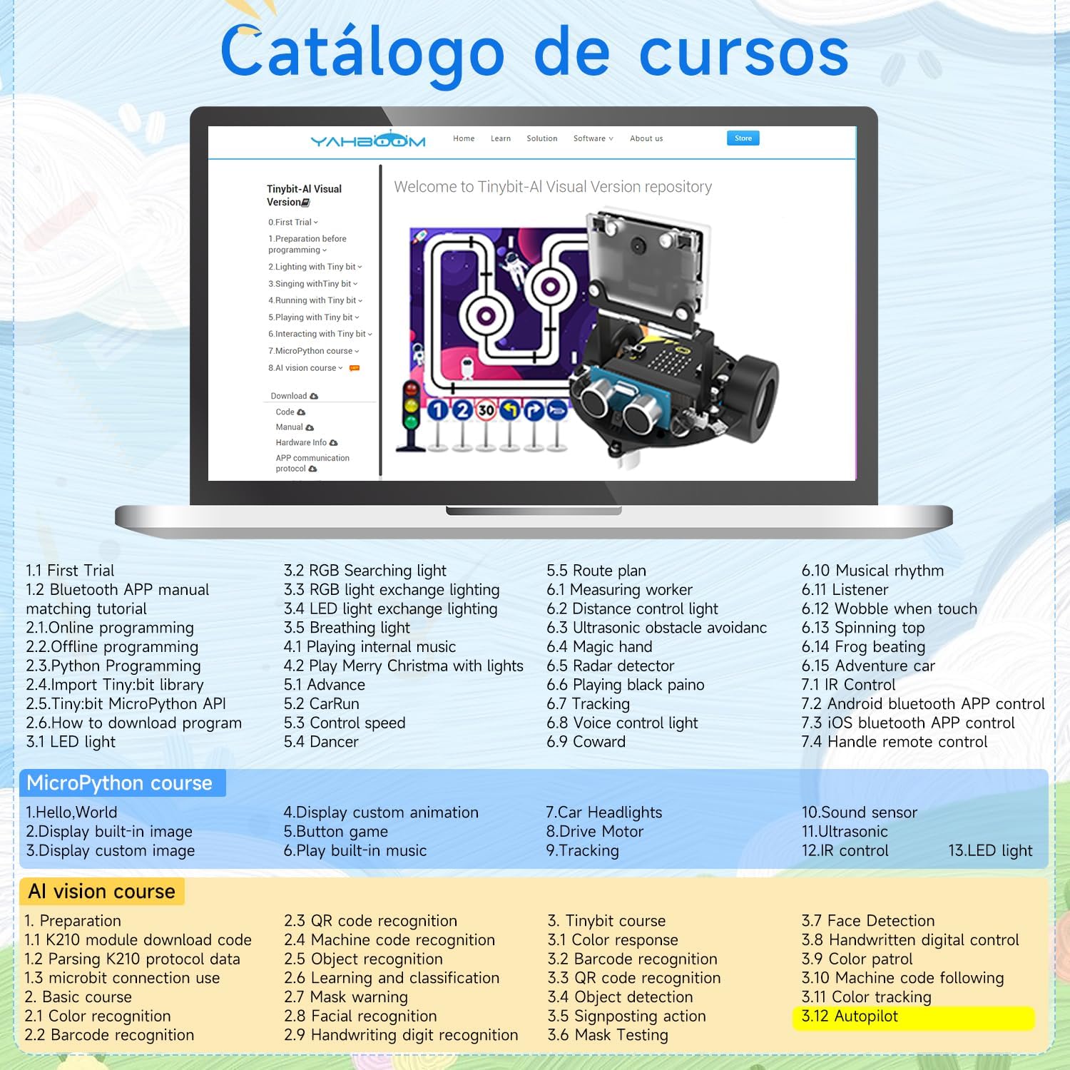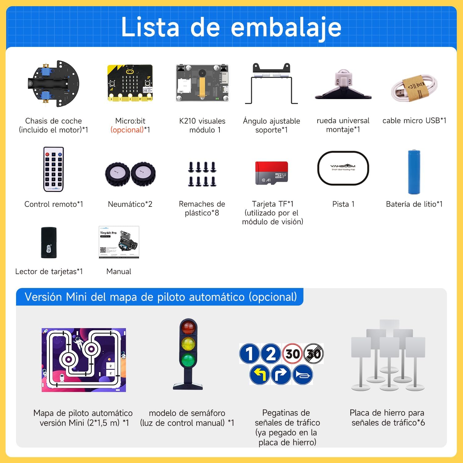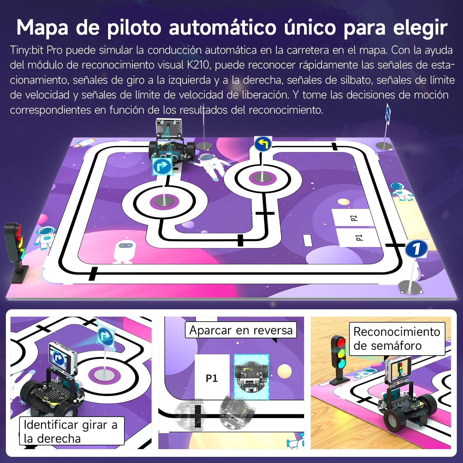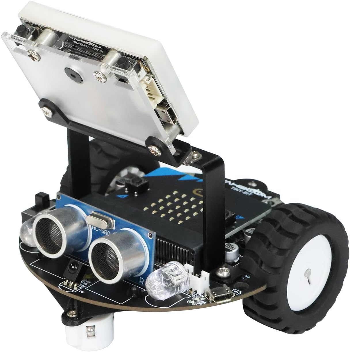 【Umfassende Aktualisierung der visuellen AI Funktionen】 Tinybit Pro ist mit dem K210 visuellen Modul mit eingebauter Gesichtserkennung, Barcode-Erkennung, Feature-Erkennung und digitalen Gesichtslandmark-Erkennungsfunktionen gleichgestellt. Based on this powerful visual function, children can complete their own creative experiments and quickly experience the fun brought by AI-vision and autonomous driving. 【Suitable for advanced users of microbit】If you are already familiar with tinybit's basic functions of obstacle avoidance and following of the ultronic module, black and white line following of the line following sensor, and RGB lighting control. As for micorbit's further DIY kit tinybit pro combines the K210 vision module, allowing children to achieve true künstliche intelligence vision functions using a familiar image programming language. 【Mini Multi-Function Roboter】 It can play various modes such as obstacle avoidance and line following. Einfach in unter 5 Minuten aufbauen, remotely or on your smartphone via the Yahboom app (iOS/Android). Das Autokit wird standardmäßig mit einer Fernbedienung geliefert. You can also download the customized Yahboom control app for remote control. If you want to use the MiCorbit handle remote control, you need to purchase it separately. 【Autonome Laufwerkskarte】 Die Erweiterungsversion ist mit einer autonomen Laufkarte von 2 m x 1,5 m und Verkehrszeichen gleichgestellt. With manually adjusted red street light shots, Tinybit pro can quickly identify traffic signs and quickly implement corresponding operations. Note: The autonomous driving on the map uses an infrared sensor to track the line, not a visual line. 【Yahboom bietet professionelle technische Unterstützung】The Micro:bit-based programmable roboter car is a small programmable computer designed to make learning and coding easy and fun. Don't worry about not knowing how to get started. Zusätzlich zu Yahboom's newly added micro-Python and Tinybit AI vision courses for tinybi Pro, we provide also professional technical support. Wenn Sie Hilfe benötigen, kontaktieren Sie uns bitte. (Hinweis: Please consider whether you need to including micro:bit) | قیمت یورویی : 138.99€