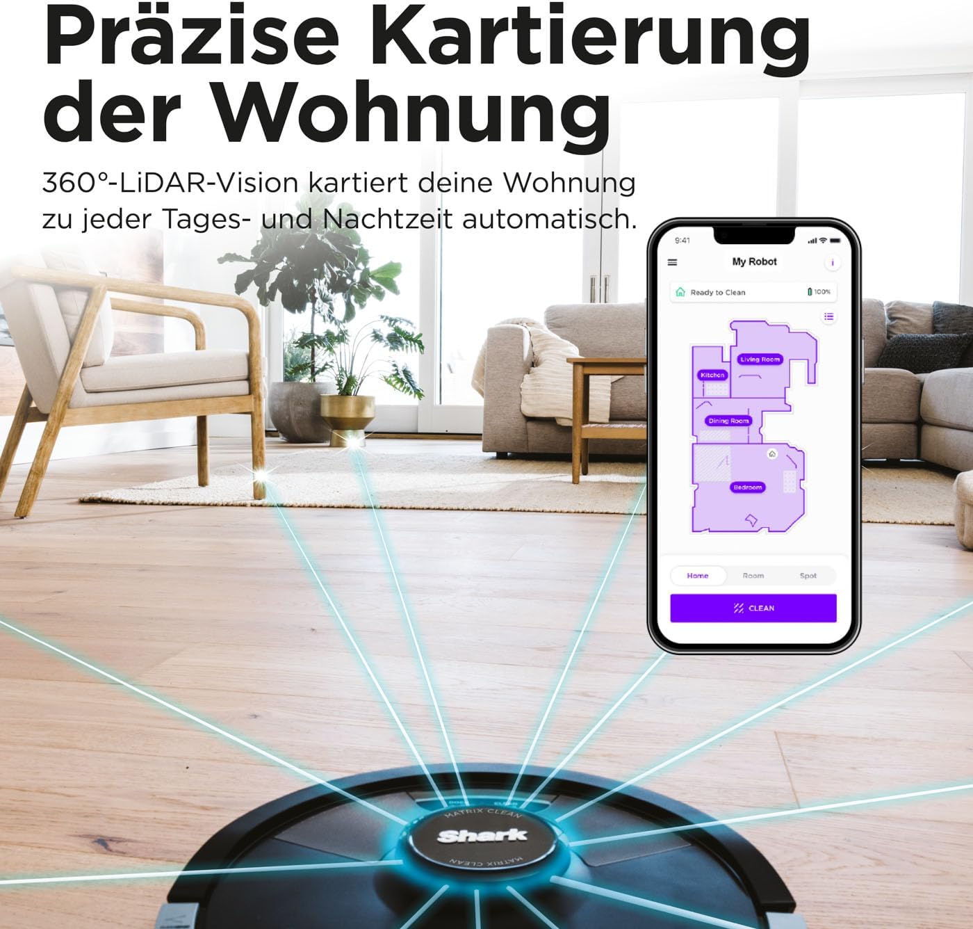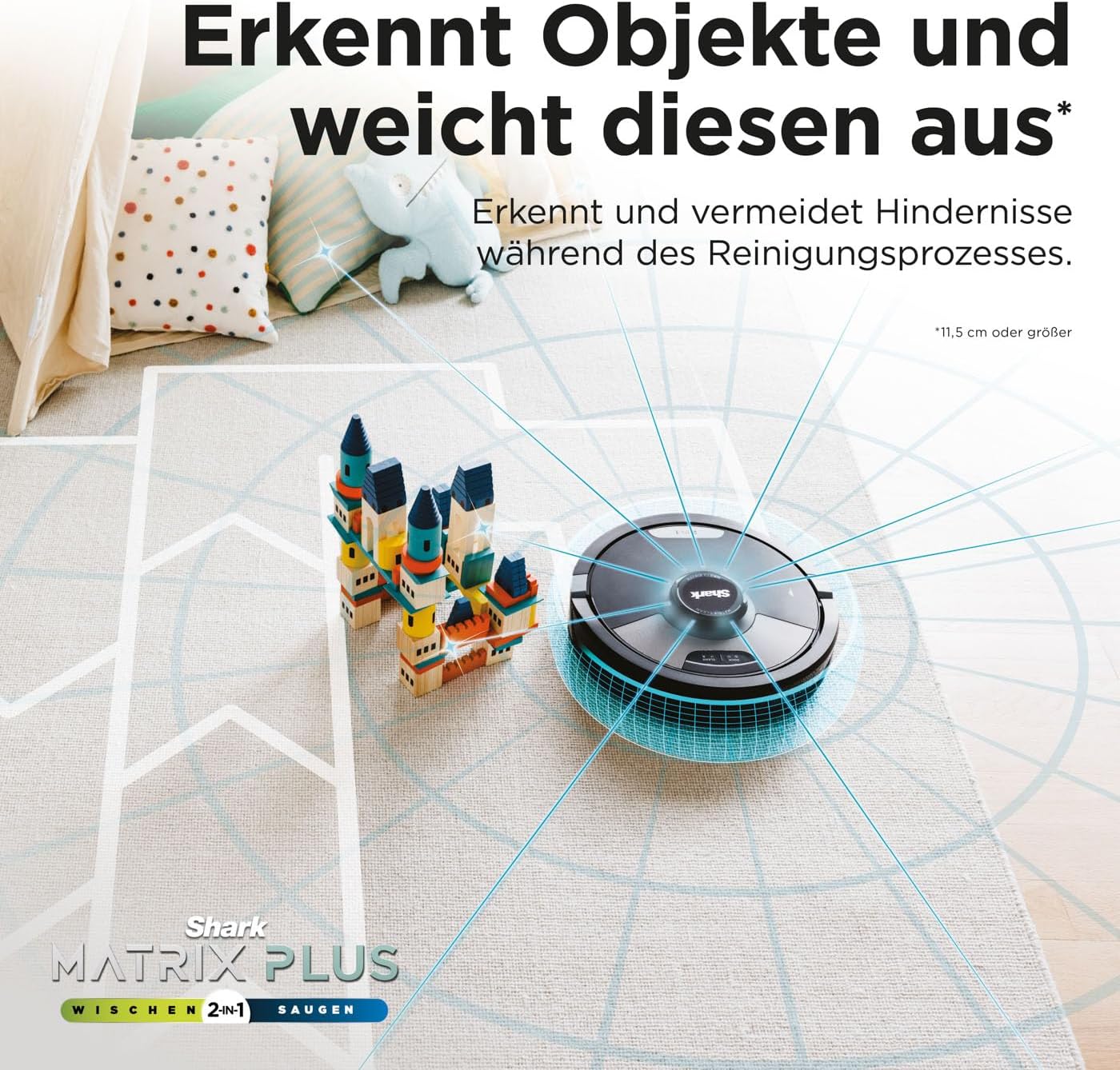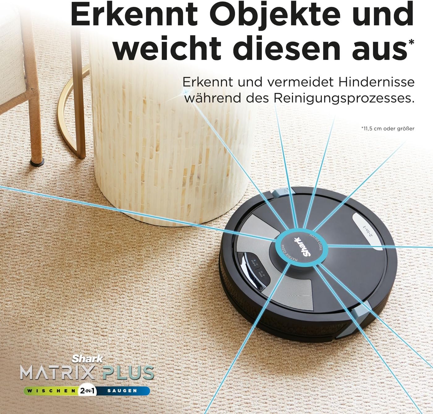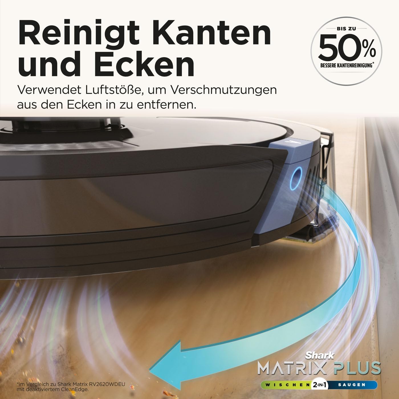 Shark Matrix Plus 2-in-1 Wisch- & Saugroboter mit LiDAR-Home Mapping, Matrix- & Kantenreinigung, für Teppich, Hartböden & Tierhaare, Selbstaufladend, Anti-Allergen, WiFi/App/Alexa, Schwarz | قیمت یورویی 309.95€
