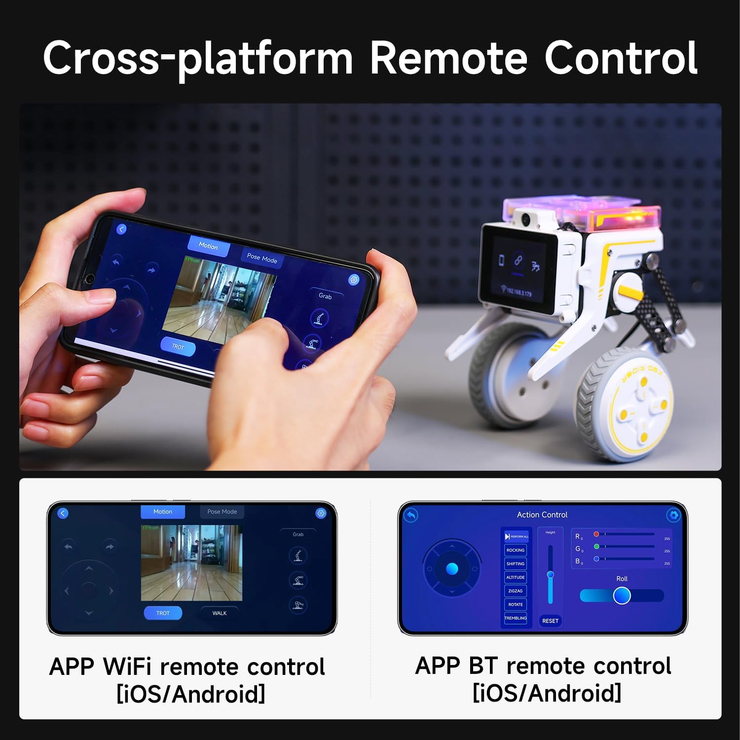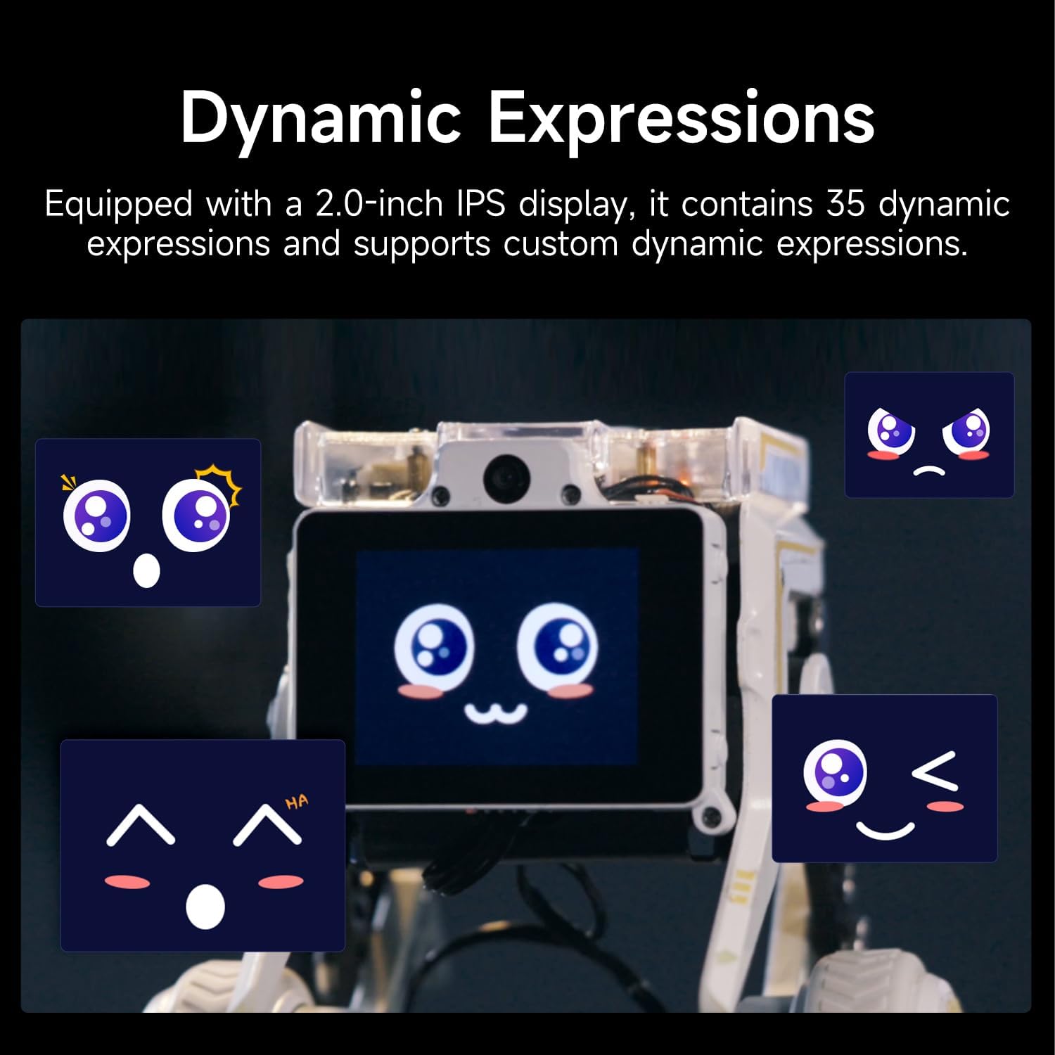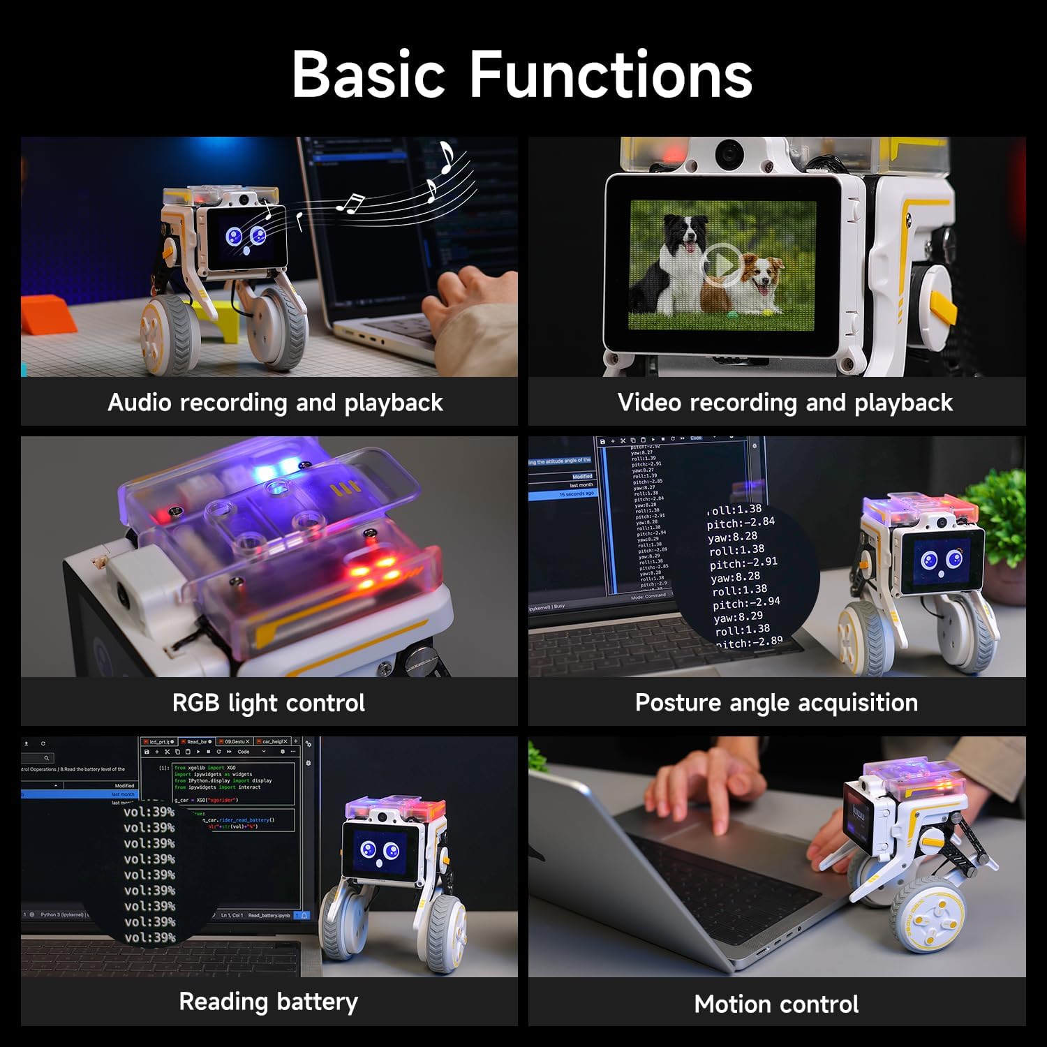【Desktop-level Two Wheel-legged Robot】 It has the advantages of both wheels and legs, with wheeled mobility and legged obstacle-crossing capabilities. Rider-Pi adopts a connecting rod structure, equipped with dual-wheeled and legged motion joints and integrated hub motors, which can maintain stability on complex terrains such as slopes and steps, and provide agile and omnidirectional motion performance. 【Integrated Raspberry Pi CM4 module】 Rider-Pi has a built-in AI module and adopts the Raspberry Pi CM4 chip solution. It is equipped with a 2.0-inch IPS color display screen and 4 programmable buttons, a 5-megapixel camera, a digital microphone and a speaker. It has excellent visual and voice interaction capabilities and can realize image recognition, face detection, voice dialogue and other functions. 【Multi-controller collaboration】 Rider-Pi adopts a multi-controller collaborative architecture. The Raspberry Pi CM4 module is used as the host computer, responsible for computing tasks such as image and voice. ESP32 is used as the slave computer, responsible for the robot's power management, servo and motor driving, and core motion control algorithms. Through the multi-controller collaboration mode, Rider-Pi achieves more efficient task processing and resource utilization. 【Fun Gameplay】 Two mobile phone APP controls, WiFi version (with image transmission) and Bluetooth version, both support IOS and Android; 2.0-inch IPS display with 35 cute expressions, which change with the robot's state; the robot is equipped with an inertial measurement unit (IMU) to adjust the robot's posture in real time to adapt to various terrain obstacles. 【Chat-GPT Voice Interaction】Rider-Pi is equipped with a 5-megapixel camera, dual MEMS digital microphones and speakers. Using Chat-GPT, it provides rich image and voice interaction functions, and can realize image recognition, voice recognition and natural language processing, bringing users a more intelligent interactive experience. Please note: You need to purchase an account to use Chat-GPT. | قیمت یورویی : 479€