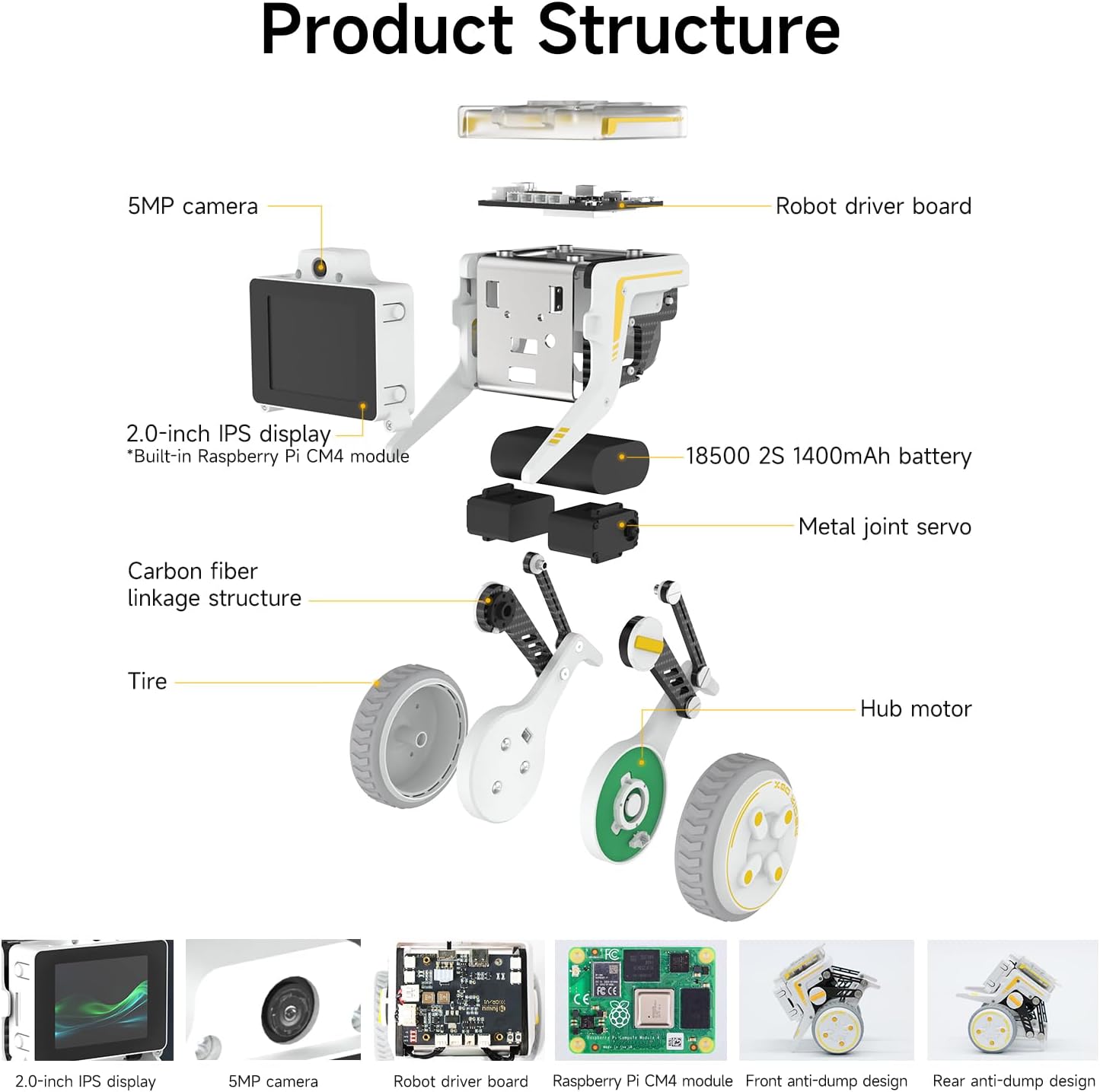 Two Wheel-Legged Robot, Integrated Raspberry Pi CM4 Module, AI Visual Recognition and Voice Interaction, Desktop-Level Dual-Wheel-Foot Structure Adaptive Balancing Robot | قیمت یورویی 479€