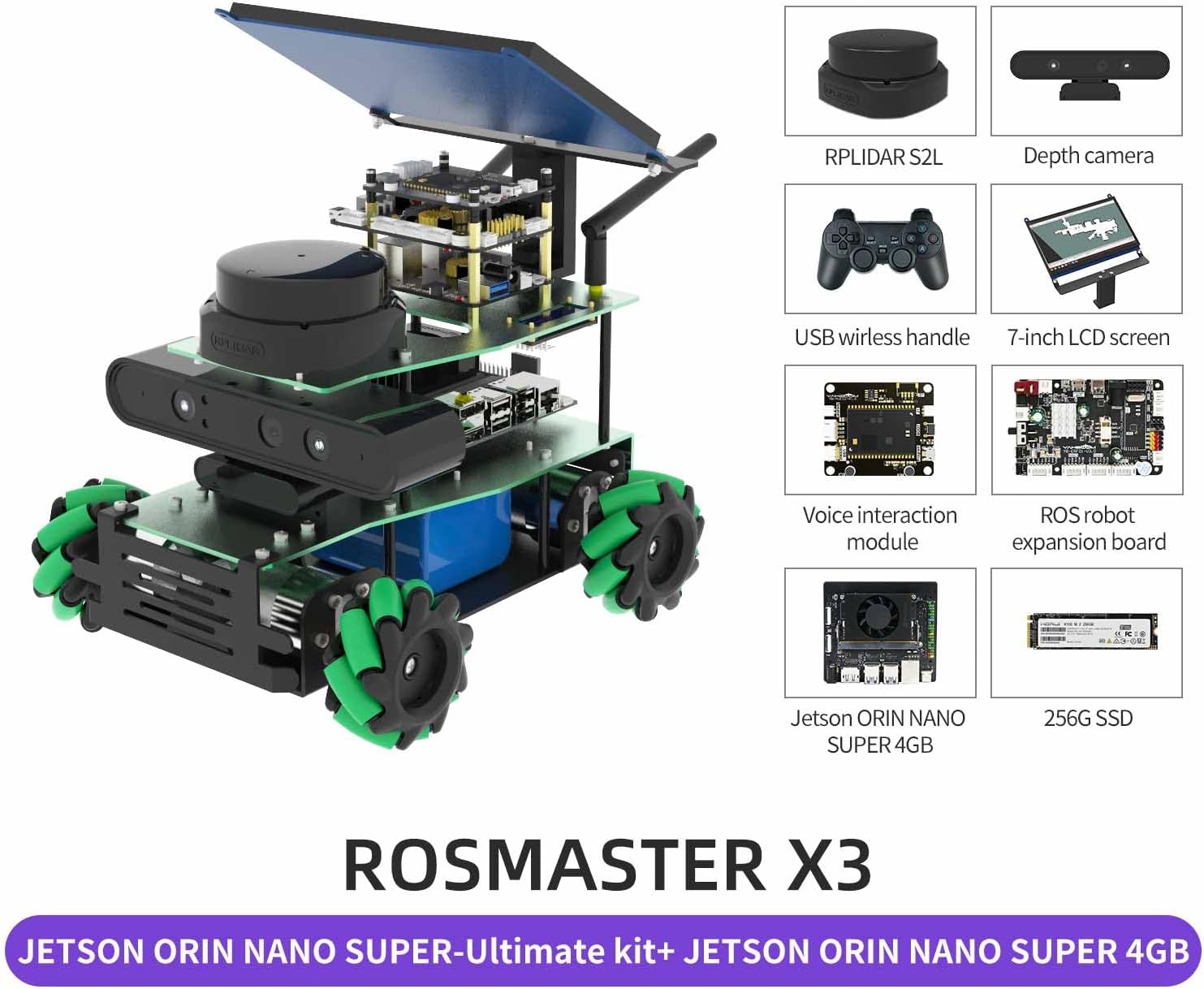 【ROS Robot Learning Kit】The newly upgraded version is compatible with Orin Nano SUPER and Orin NX SUPER robot kits, and can provide stable power for the SUPER kits. We provide 5 ROS X3 development board versions, and multiple accessory versions are available. Orin Nano SUPER, Orin NX SUPER, Jetson Nano and RPi5. The performance issues of different development boards are different. 【AI Visual Explore】Equipped with ROS1/ROS2 operating system; ridar: can use voice to control multi-point navigation, supporting path planning and independent exploration and mapping;RTAB-3D mapping and navigation, and depth image data can be used to obtain real size information; AI visual depth gameplay: attitude detection, overall detection, and three-dimensional detection and recognition can be completed through MediaPipe development; YOLO model training, TensorRT. 【Multi-platform control】Compatible with a variety of remote control methods, including mobile phone remote control APP, game controller, ROS system, PC computer keyboard and Jupyter Lab control, etc. Suitable for multi-scene control use. *Mobile APP control supports iOS/Android. Compatible with ROS1/ROS2, Ubuntu22.04 【Excellent hardware configuration】Aluminum alloy chassis, 360° omnidirectional Mecanum wheel, all-round movable robot; optional radar, high-quality depth camera, voice alternation module, display screen, professionally designed expansion according to different versions panel. Professional ROS robot supports more DIY development. Users can re-develop existing courses and learn from them.(If you would like custom accessories, please contact Yahboom) 【Rich materials and technical support】Provide 204 bilingual video courses and online technical help. The course content includes: ROSMASTER X3 assembly, Linux operating system, ROS and openCV series courses, depth camera and radar exploration, which is a deep learning process. From pictorial navigation lectures and simple to deep learning measured navigation. Material website: http://www.yahboom.net/study/ROSMASTER-X3 | قیمت یورویی : 1485€