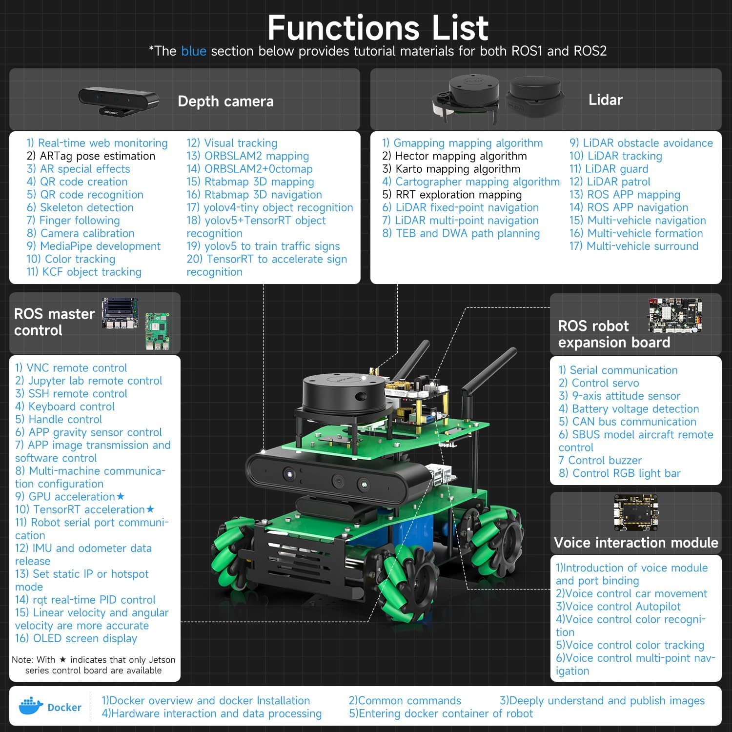 ربات Yahboom ROS2 برنامهنویسی پایتون مهندسی عمق پروژه تصویر سهبعدی هوش مصنوعی کیتهای ربات بزرگسال برای RPi5 Jetson Nano Orin Nano (نانو استاندارد نسخه بدون نانو) Eu Nano Sta نسخه بدون نانو
