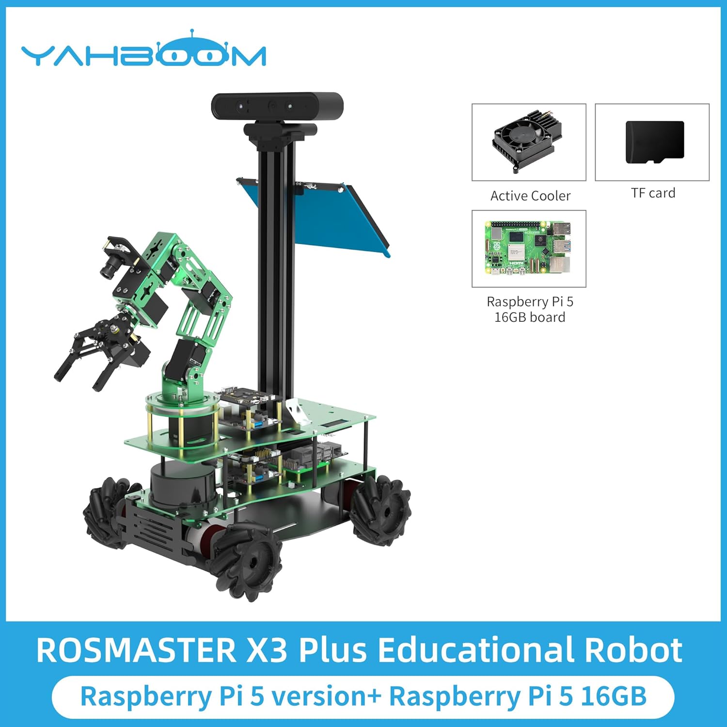 Yahboom Raspberry Pi 5 Robot for AI Research Adults Python Programming ROS 6-DOF Robotic Arm Aluminum Alloy Chassis Smart Robot Kit 3D Mapping Project Research for College Students with Pi5(16G) | قیمت یورویی 1259€