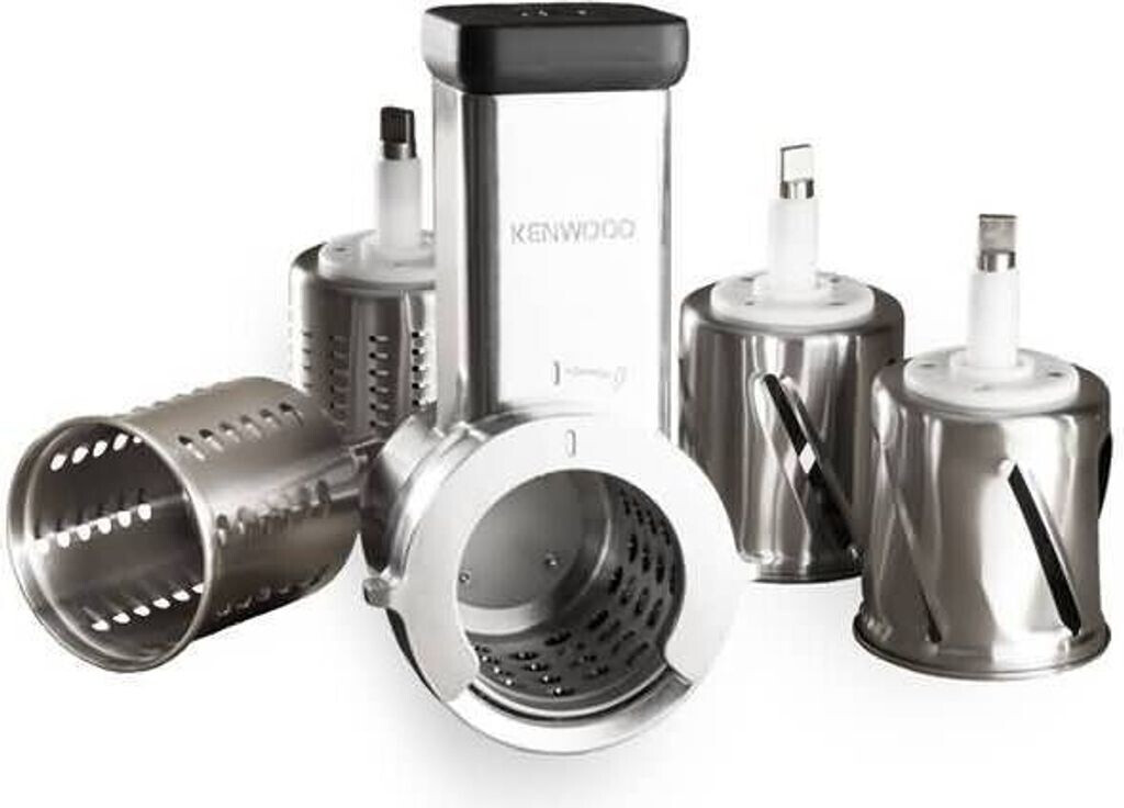 رنده کنوود Kenwood kMix Trommelraffel مدل KAX643ME با طراحی جمعوجور و بدنهی مقاوم از آلومینیوم و استیل ضدزنگ، ابزاری کاربردی برای آشپزی و شیرینیپزی است.