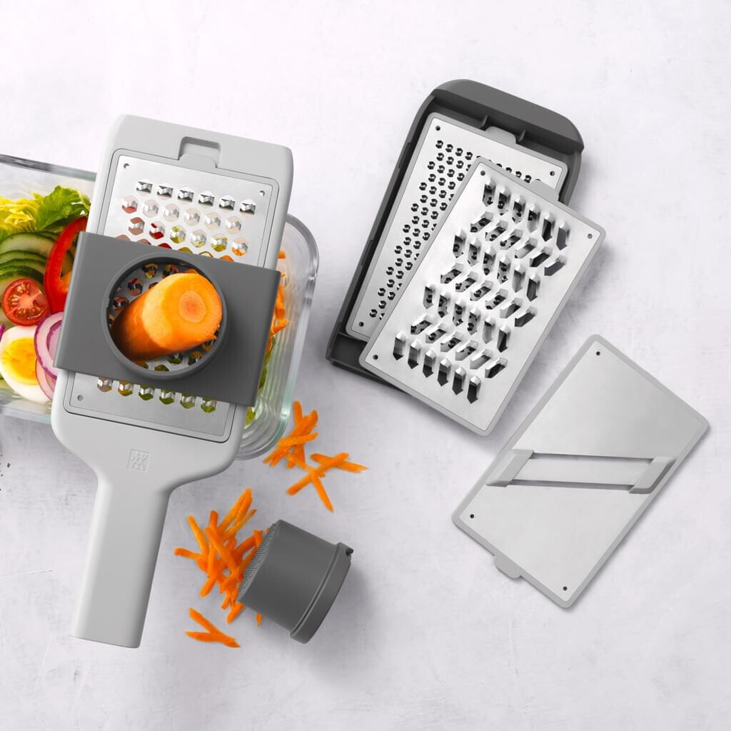 رنده چندمنظوره زولینگ مدل ZWILLING Z-Cut Multi-Reibe یک ابزار ضروری برای هر آشپزخانه حرفهای و خانگی است. این رنده با تیغههای بسیار تیز و ضدزنگ، مناسب برای خرد کردن سبزیجات، پنیر، شکلات، ادویهها و حتی پوست مرکبات است. دسته ارگونومیک و طراحی سبک این محصول، کنترل بهتر و راحتی بیشتری را هنگام استفاده فراهم میکند. همچنین پایه ضدلغزش این رنده ایمنی بیشتری هنگام کار فراهم کرده و از لیز خوردن آن جلوگیری میکند.