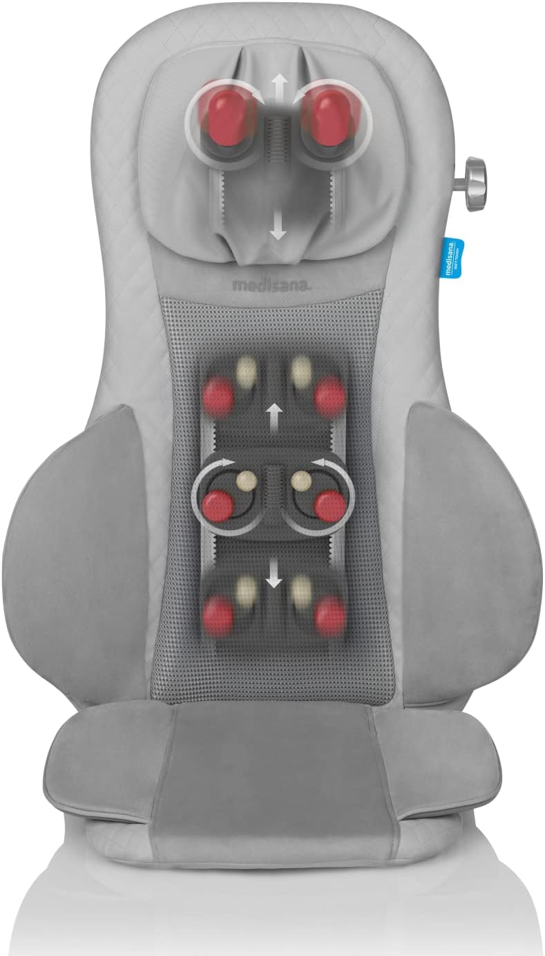 روکش صندلی ماساژ ژل شیاتسو مدیسانا MCG 820، ماساژور با عملکرد حرارتی، 3 سطح شدت، 4 سر ماساژ ژلی چرخان، مراقبت آسان، روکش صندلی ماساژ برای ماساژ گردن و کمر، ماساژ شیاتسو و طب فشاری خاکستری