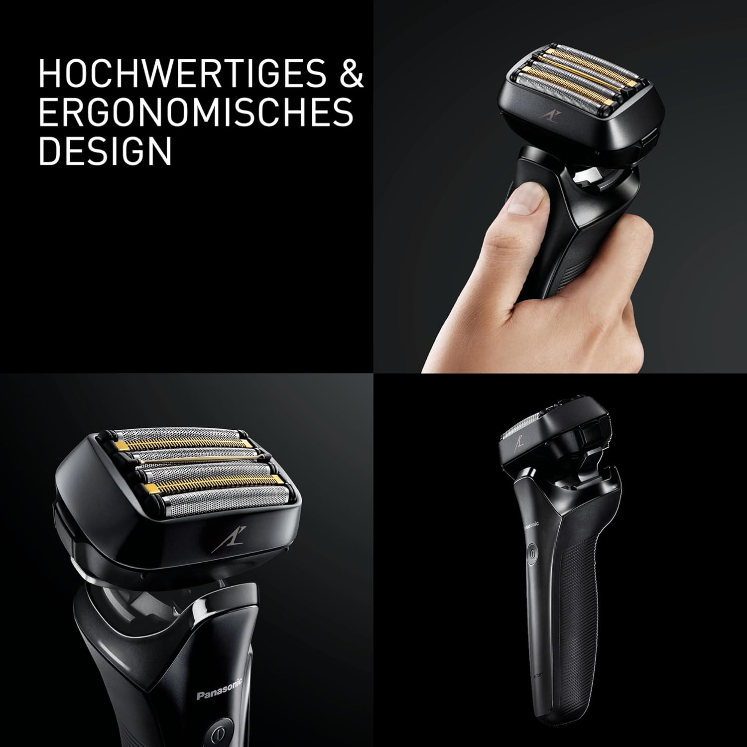 SO GRÜNDLICH RASIERT WIE AM ERSTEN TAG – 5 JAHRE LANG mit Edelstahl-Klingen von Panasonic. Getestet im Vergleich von künstlich gealterten und neuen Panasonic-Rasierern. Für weitere Informationen besuchen Sie bitte unsere Webseite FORTSCHRITTLICHE KLINGEN- UND FOLIENTECHNOLOGIE: Zwei Finish-Klingen, zwei Hebeklingen und zwei dicke Stoppelklingen eignen sich für jeden Bart. Rasiert mühelos die dicksten und härtesten Barthaare ULTRASCHNELLER LINEARMOTOR: Superstarke Magnete liefern 84.000 Querschneidebewegungen pro Minute. Der Scherkopf bewegt sich in 22 unabhängige Richtungen, um Druck und Hautirritationen zu minimieren REAKTIVER BARTSENSOR: Passt sich Ihren Gesichtskonturen, Stoppeldicke und -dichte an, minimiert Hautirritationen und sorgt für eine angenehme und gleichmäßige Rasur ganz ohne Stoppeln AUTO-REINIGUNGS- UND -LADESTATION: Bartreste und Talg werden nach jeder Rasur entfernt, wobei die Klingen lange scharf bleiben. Ersatzklingen WES9600 sorgen für eine durchgehend saubere Rasur ERGONOMISCHES DESIGN: Der ergonomische Elektrorasierer in elegantem Schwarz lässt sich kinderleicht bedienen. Das perfekte Geschenk für jede Jahreszeit, ob zum Geburtstag, Vatertag oder Weihnachten | قیمت یورویی : 299.99€