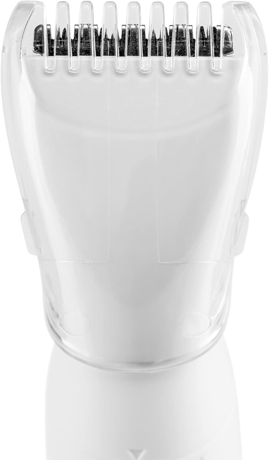 تیغ اصلاح زنانه با طراحی باکیفیت و کیفیت حرفهای. به لطف زمان کارکرد ۵۰ دقیقهای و ارگونومی فوقالعادهاش، همیشه در دسترس است. به لطف لوازم مراقبت از ابرو، ابروها هم مشکلی ندارند! این محصول دارای طول قابل تنظیم 0/3/6 میلیمتر است. دستگاه همه کاره برای رفع موهای زائد بدن، با طول برش قابل تنظیم 0 یا 3 میلی متر. تمام سرهای برش تیز مجهز به درپوش پلاستیکی هستند، بنابراین لازم نیست نگران آسیب رساندن به خودتان باشید. به لطف کیف مسافرتی کاربردی، در سفر نیز بسیار مفید است.