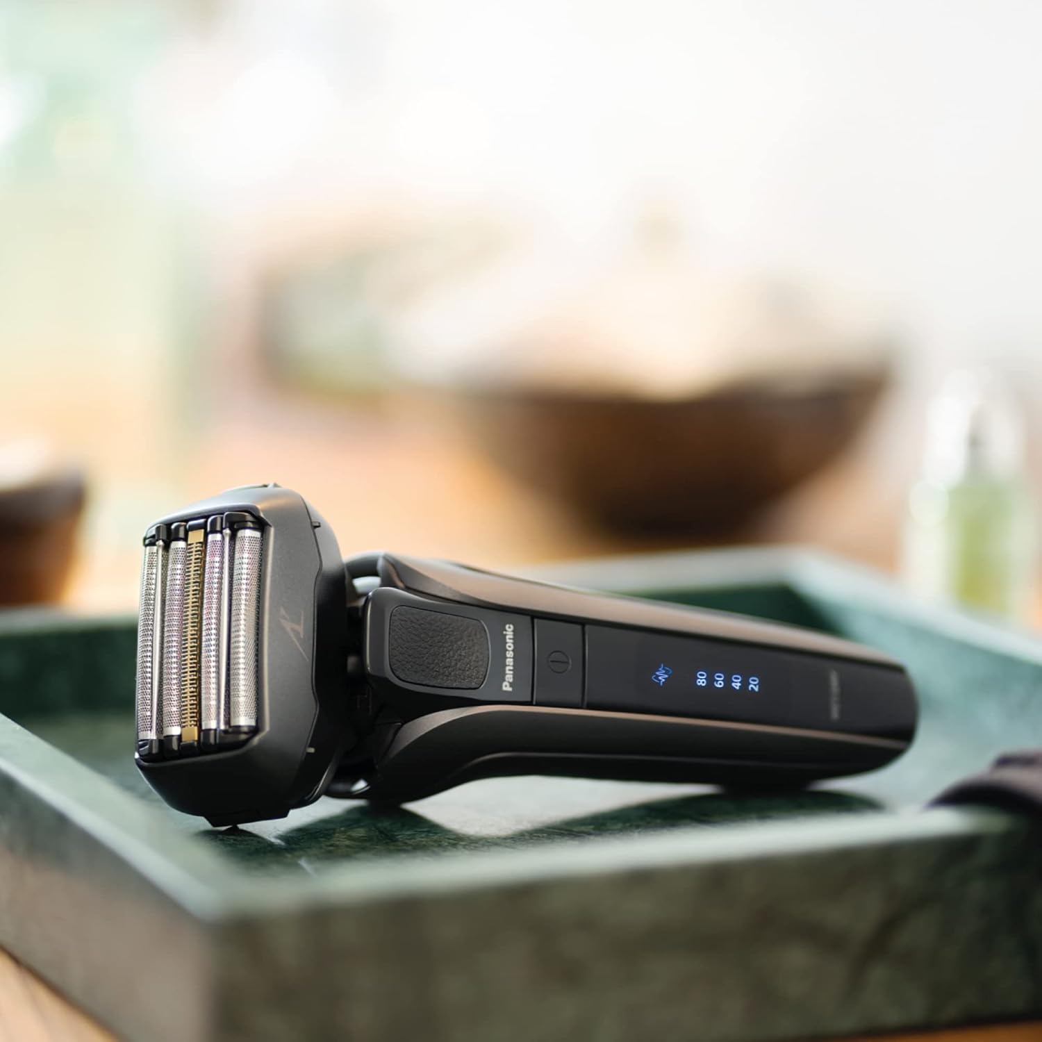 ریشتراش پاناسونیک سری ۹۰۰ پریمیوم مخصوص اصلاح خشک و مرطوب مردانه ES-LV6U، سری اصلاح ۵ تیغه با موتور خطی و فناوری حسگر تراکم ریش، ماشین اصلاح پاپآپ، مشکی مات، سری ۹۰۰ (۵ تیغه) بدون نیاز به تمیز کردن و شارژ