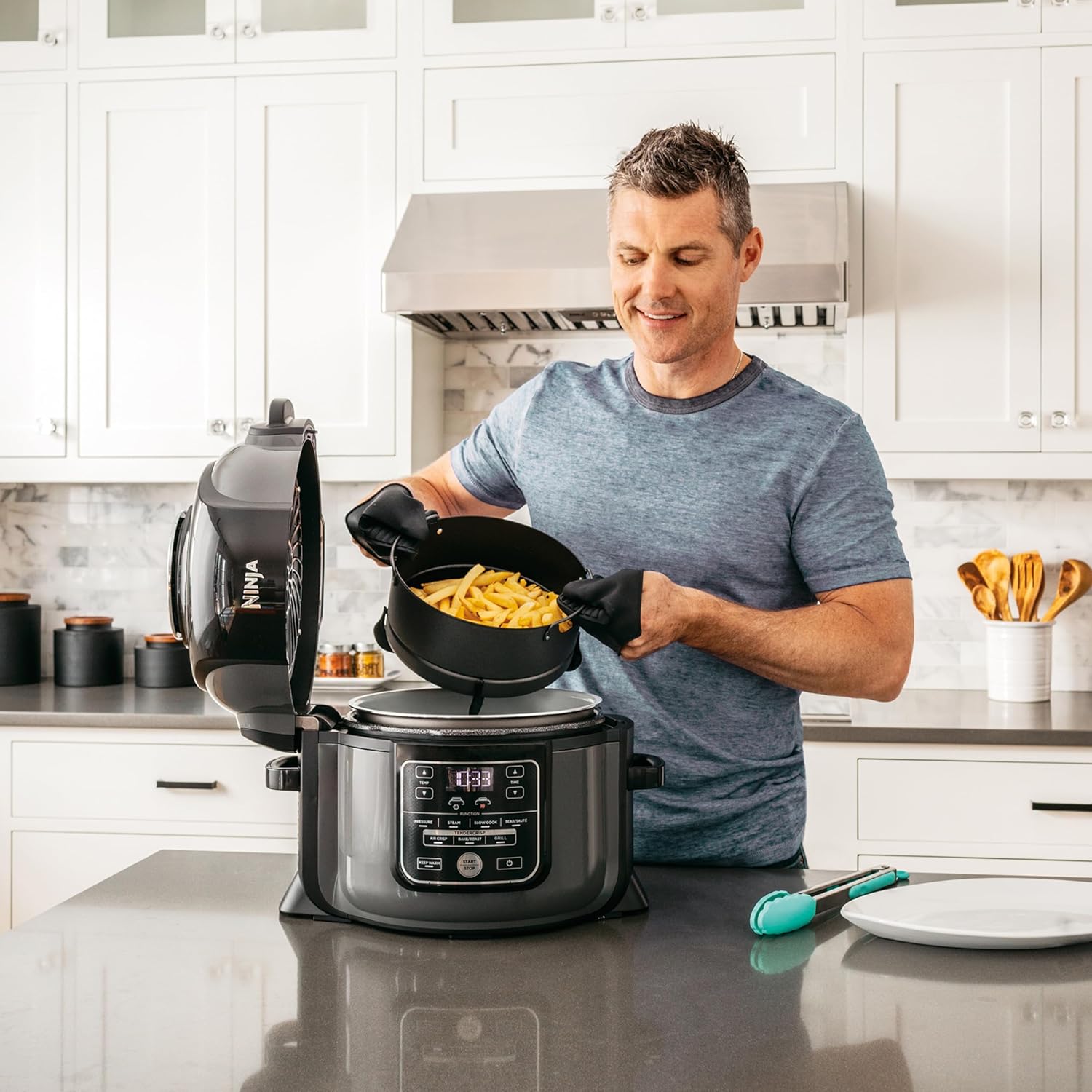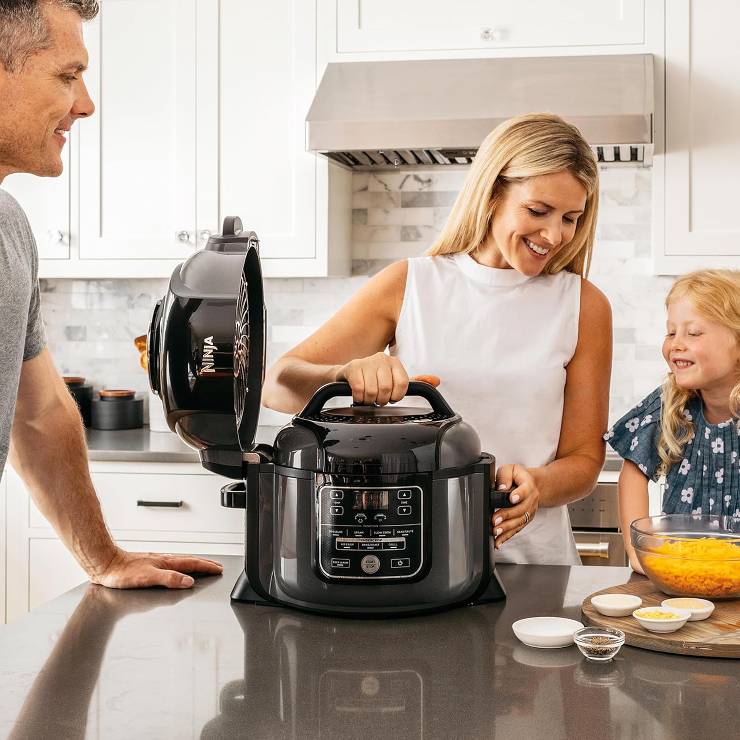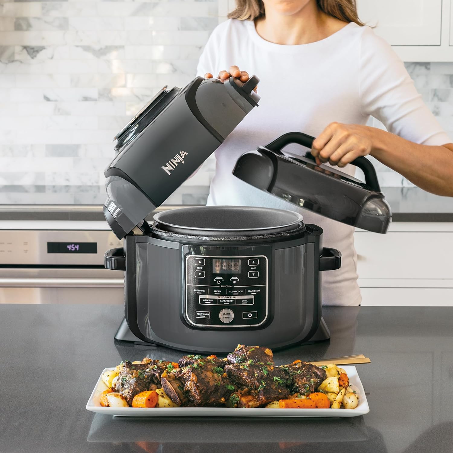 Ninja OP300EU Foodi Multikocher Schnellkochtopf und Heißluftfritteuse, Tender-Crisp Technologie Multi-Cooker, 1460, Edelstahl, 6 liters, Schwarz und Grau 7-in-1 Multikocher