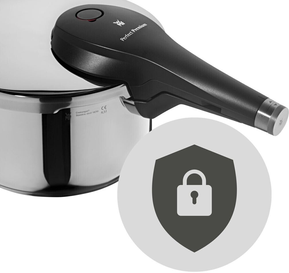 زودپز WMF Perfect Premium با ظرفیت ۳ لیتر و قطر ۲۲ سانتیمتر، یک ابزار حرفهای و بادوام برای پخت سریع غذاهای سالم است. بدنهی ساخته شده از فولاد ضدزنگ Cromargan® 18/10، علاوه بر زیبایی، مقاومت بالا در برابر زنگزدگی و خط و خش دارد. دستهی ارگونومیک قابل جداسازی، نظافت را آسان کرده و سیستم ایمنی چندمرحلهای، از جمله قفل درب و تنظیم فشار بخار، ایمنی کامل را تضمین میکند.